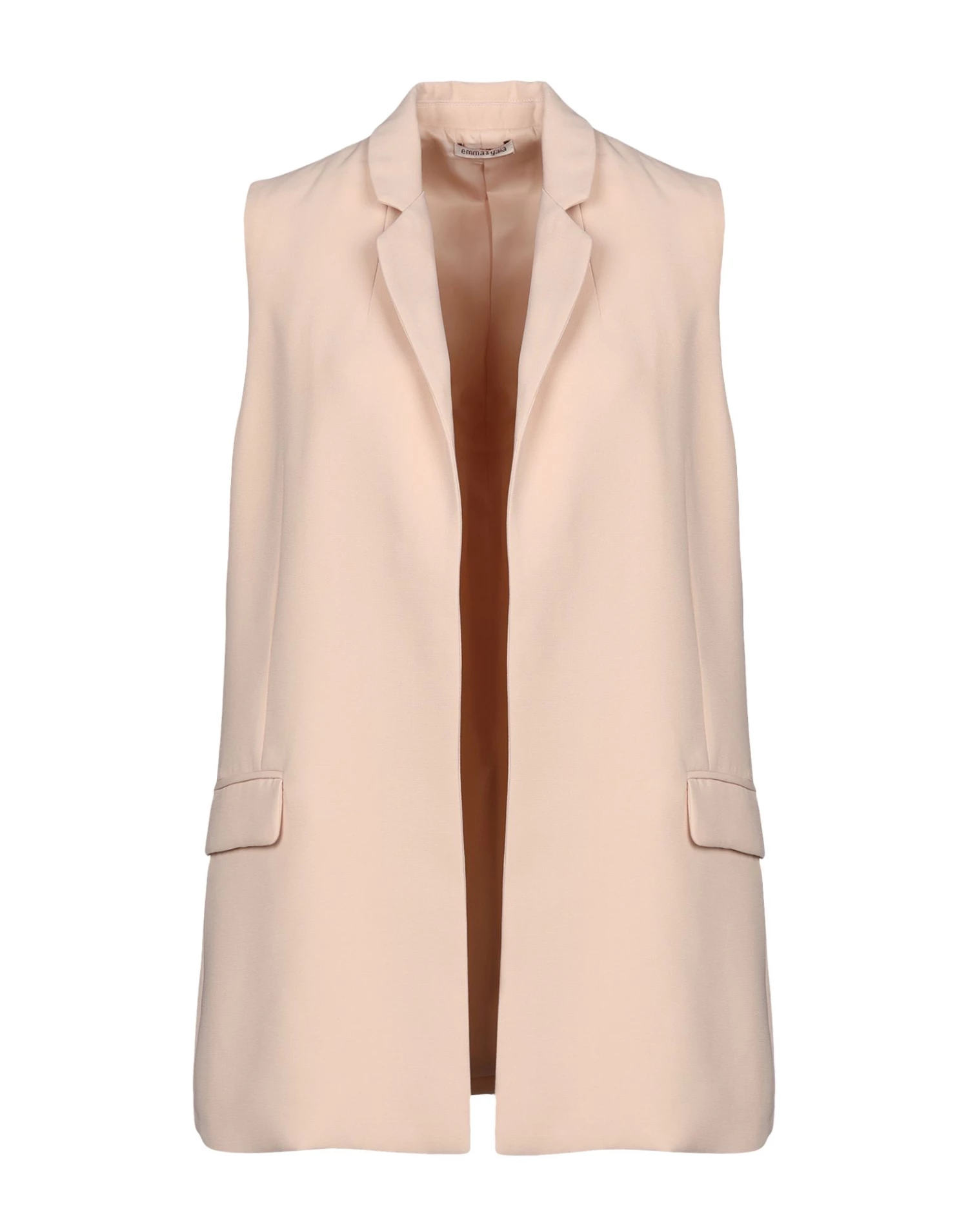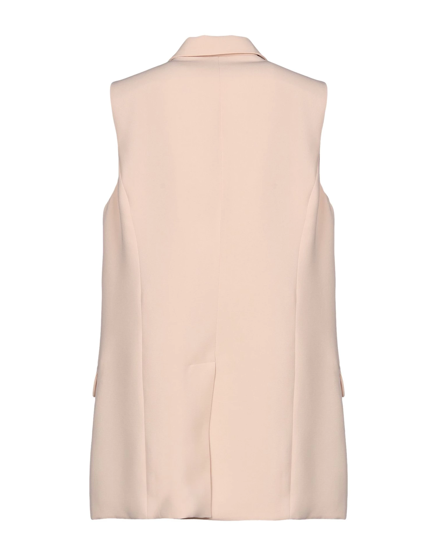 crepe, no appliqués, basic solid color, multipockets, single chest pocket, lapel collar, single-breasted , sleeveless, fully lined, single-breasted jacket