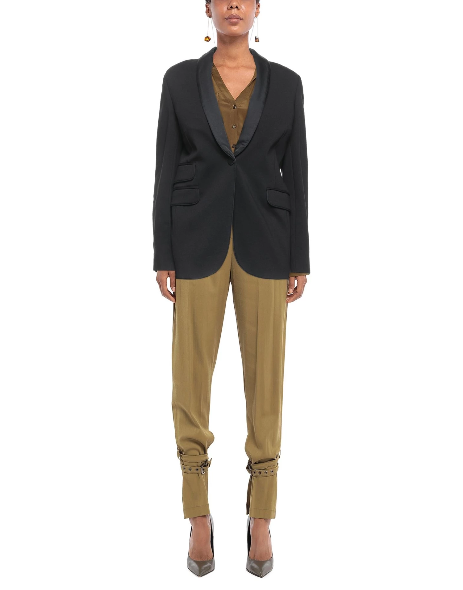 satin, jersey, no appliqués, solid color, lapel collar, single-breasted , long sleeves, fully lined, button closing, multipockets, stretch, with shoulder pad