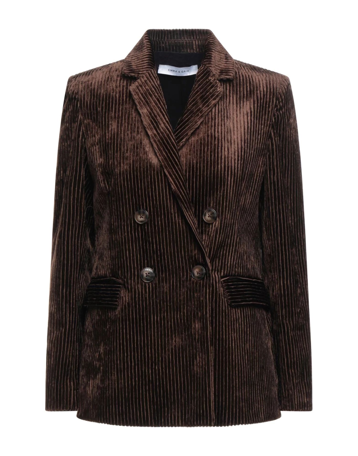 velvet, no appliqués, basic solid color, lapel collar, long sleeves, double-breasted, multipockets, button closing, fully lined