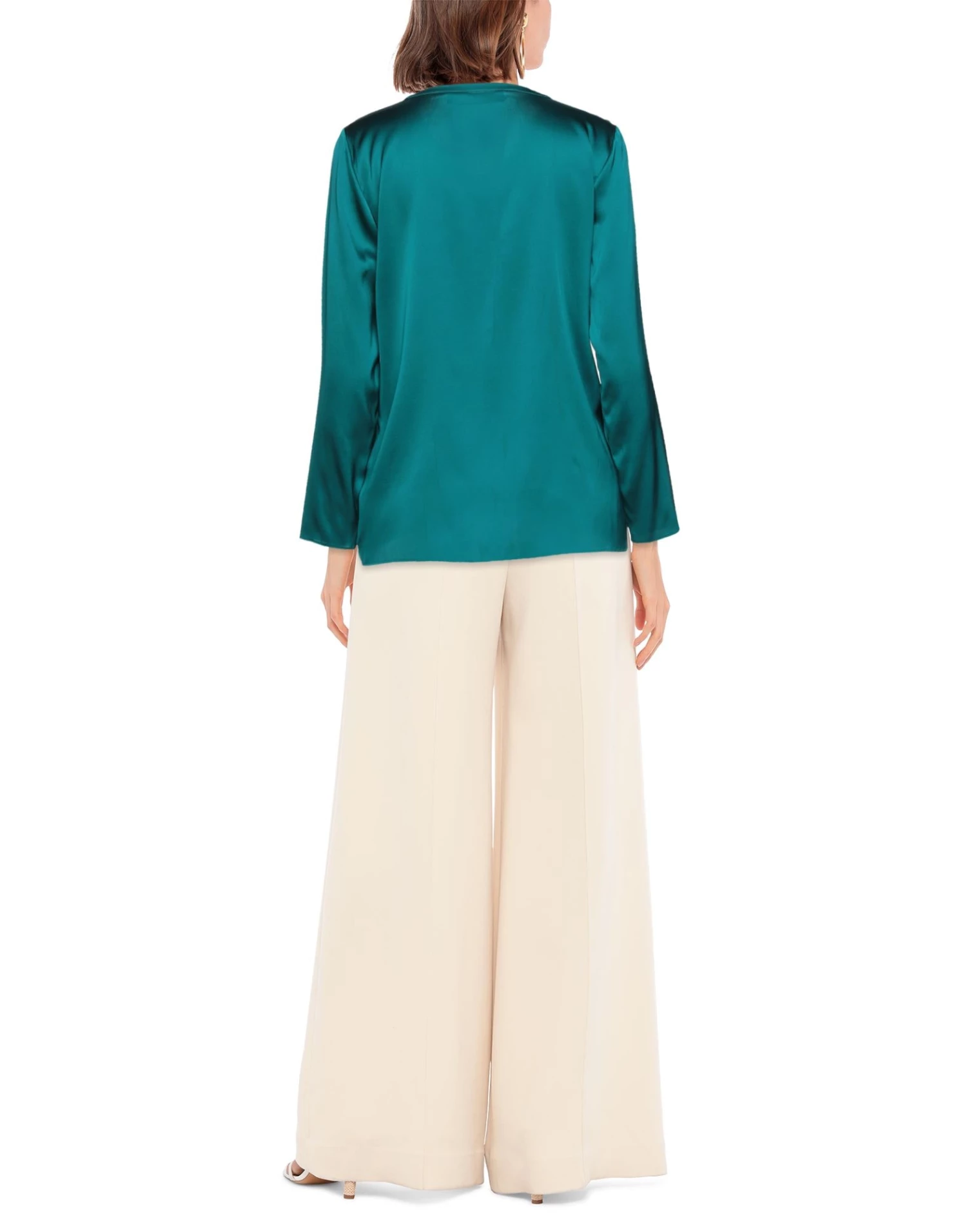 satin, no appliqués, solid color, v-neck, long sleeves, no pockets, stretch