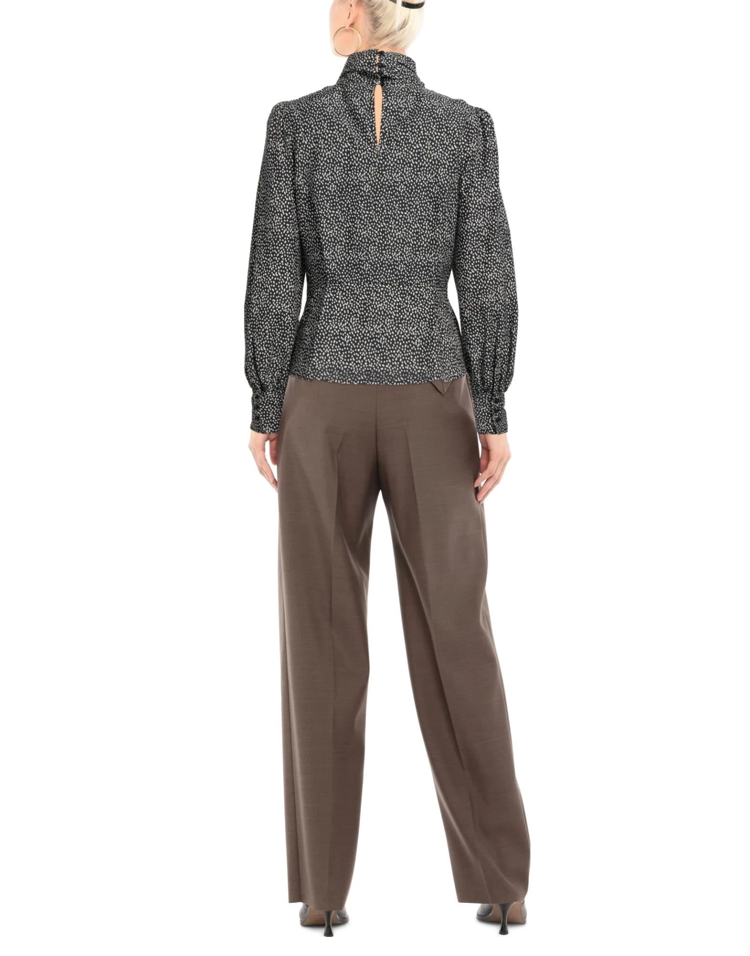 plain weave, no appliqués, two-tone, round collar, long sleeves, buttoned cuffs, no pockets