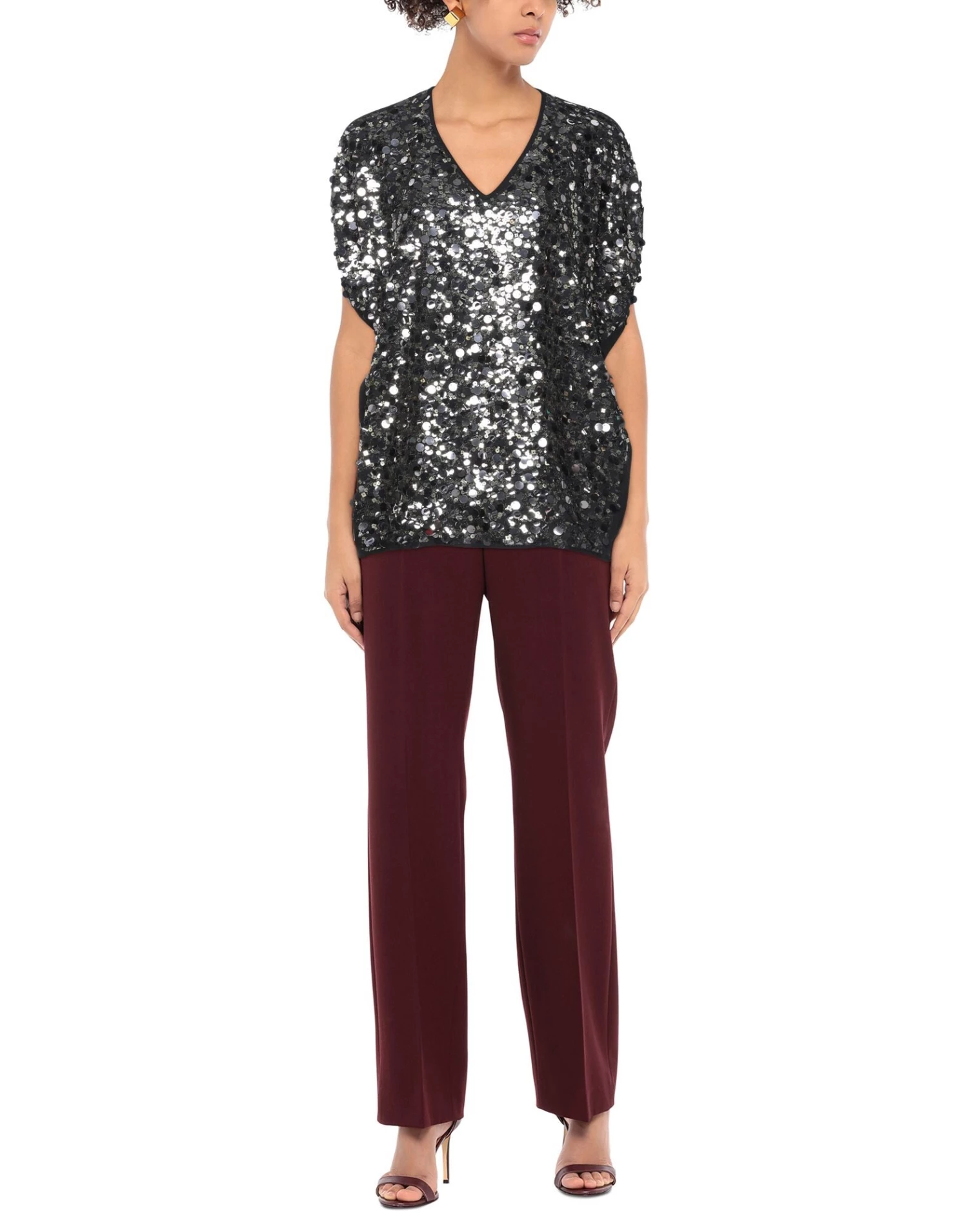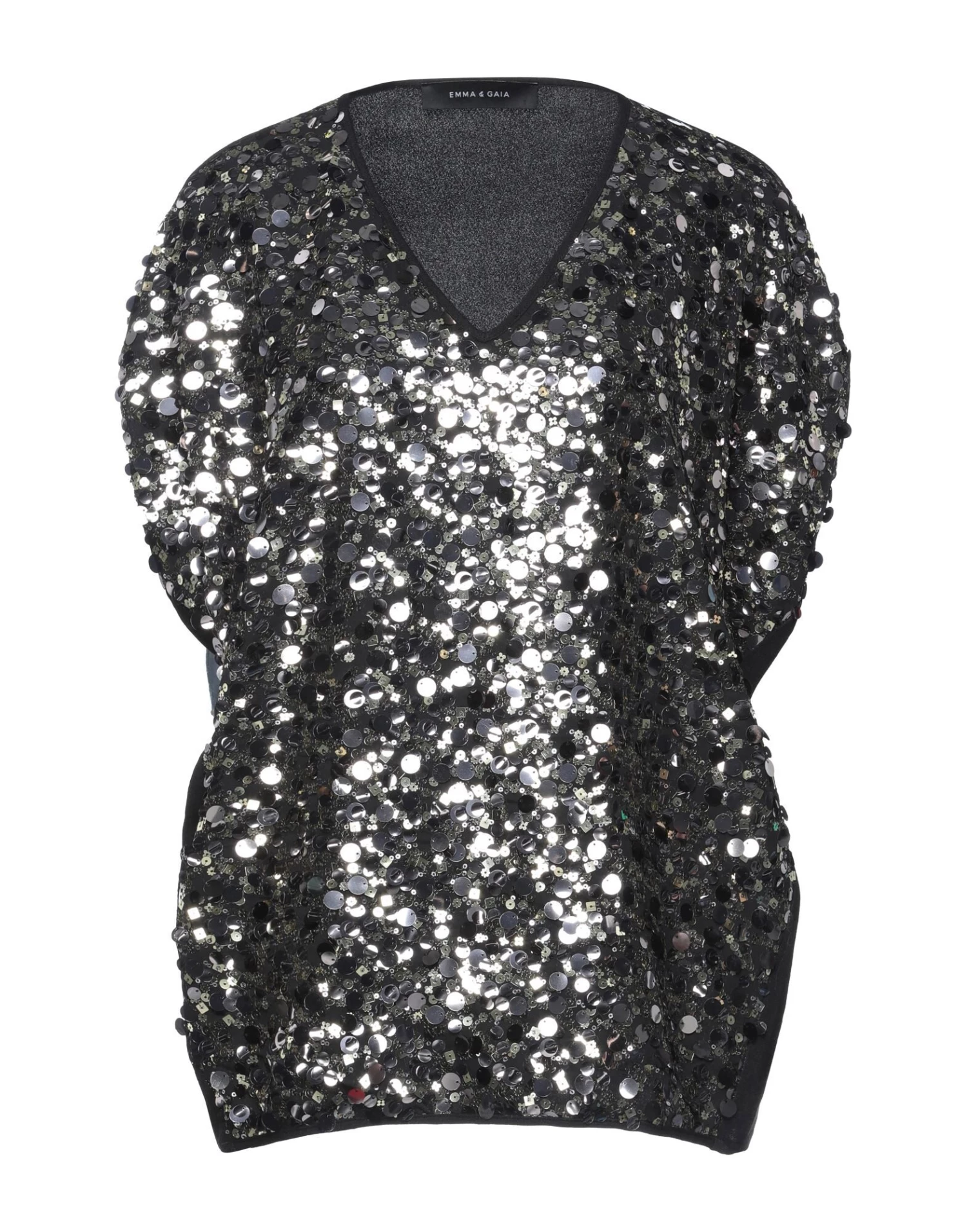 crepe, sequins, multicolor pattern, v-neck, short sleeves, no pockets