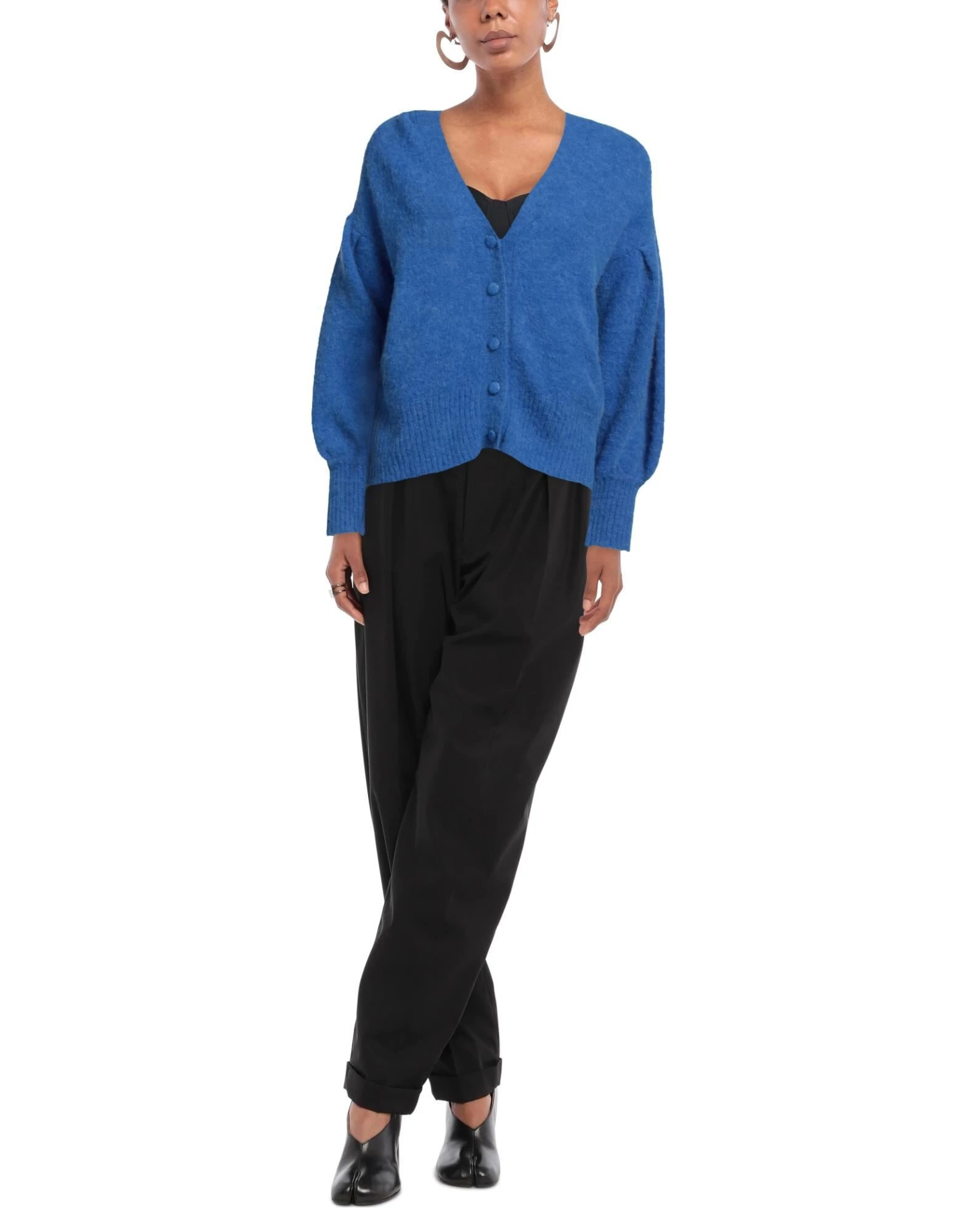 knitted, medium-weight knit, mélange, no appliqués, solid color, v-neck, long sleeves, button closing, multipockets, stretch