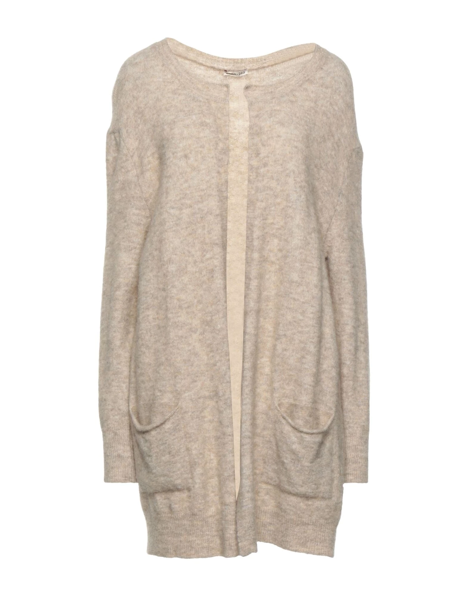 knitted, laminated effect, lightweight knit, no appliqués, solid color, deep neckline, long sleeves, unlined, multipockets