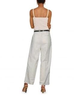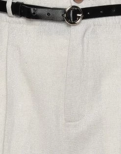 plain weave, lamé, belt, solid color, high waisted, straight leg, regular fit, 1 button, zipper closure, multipockets
