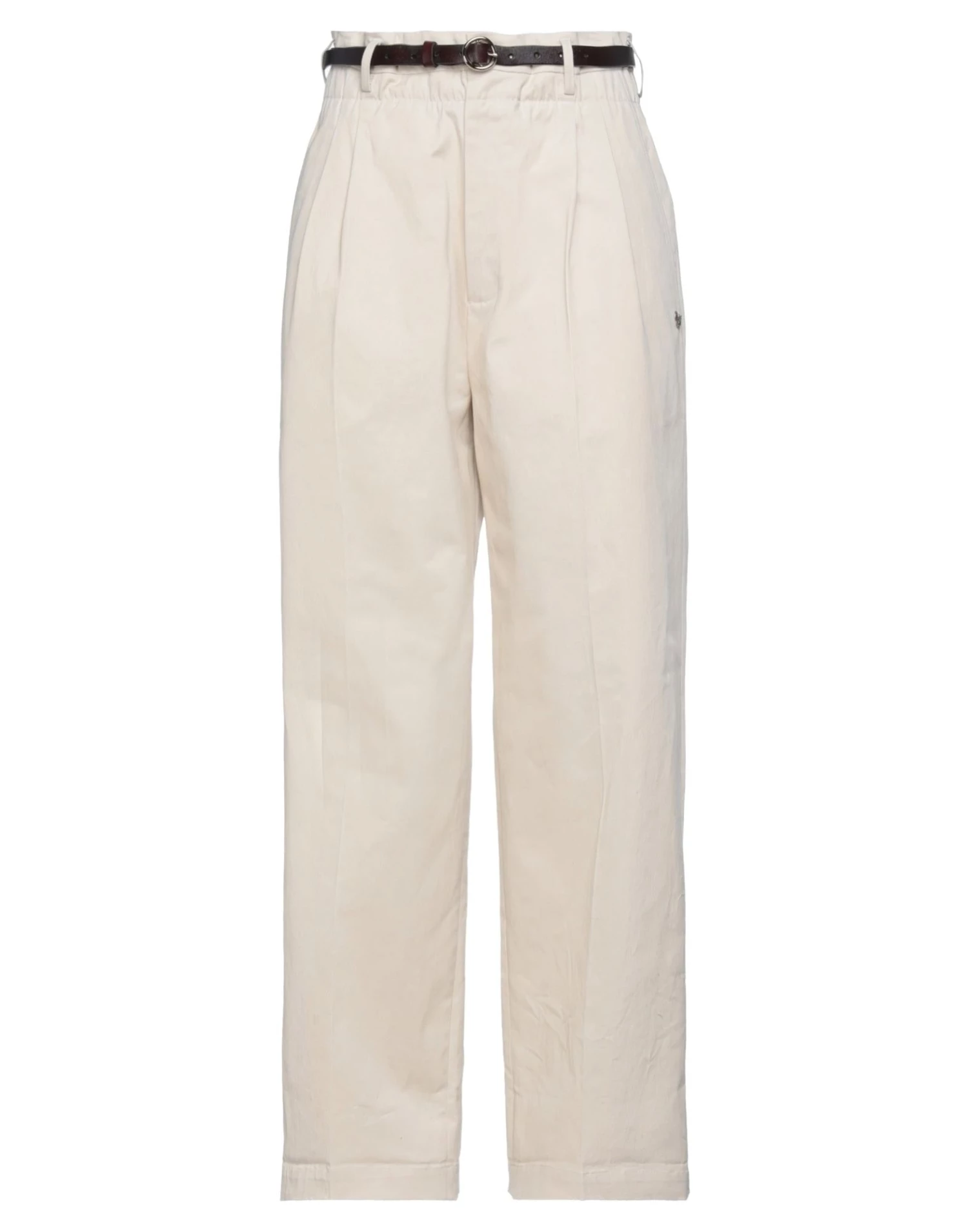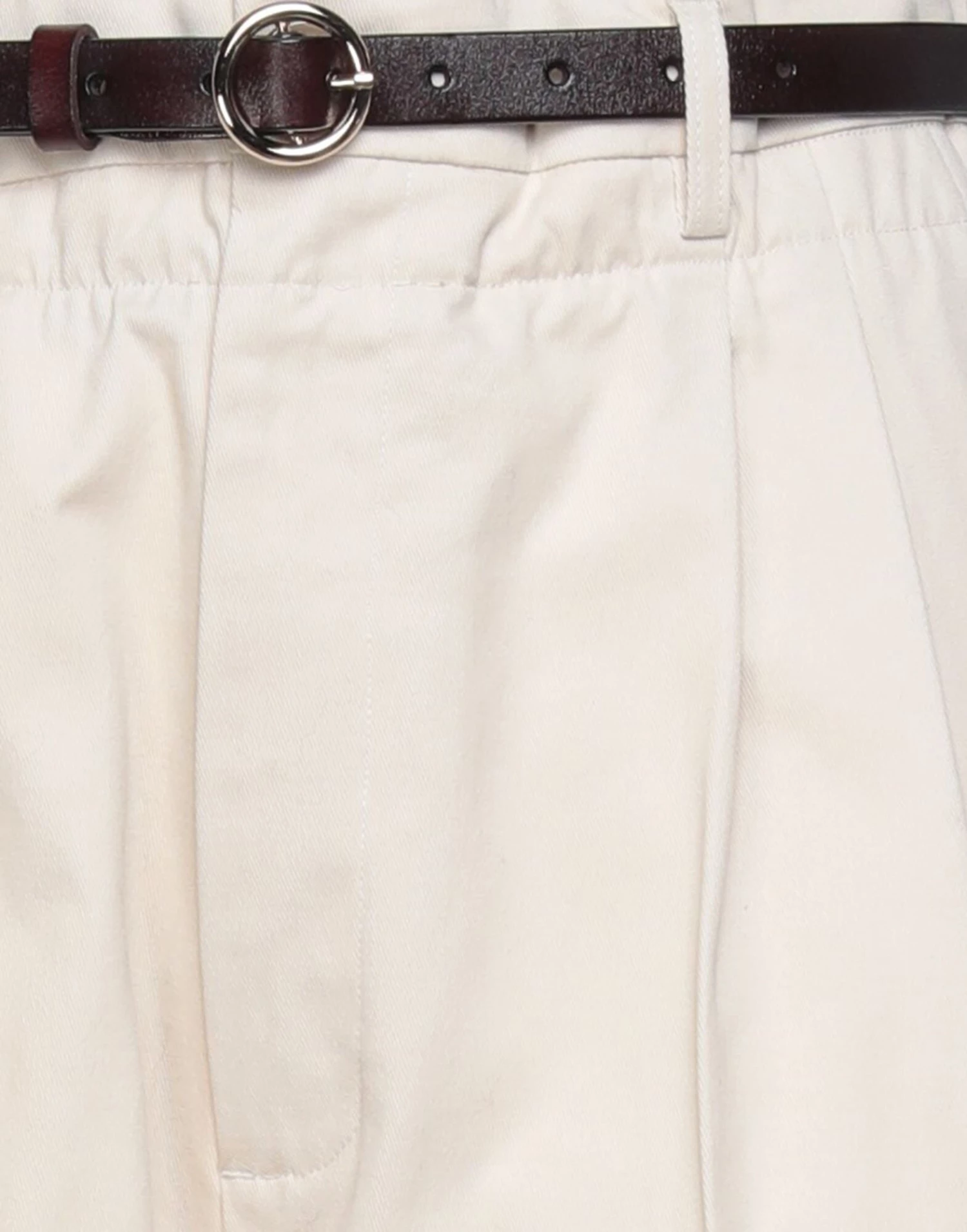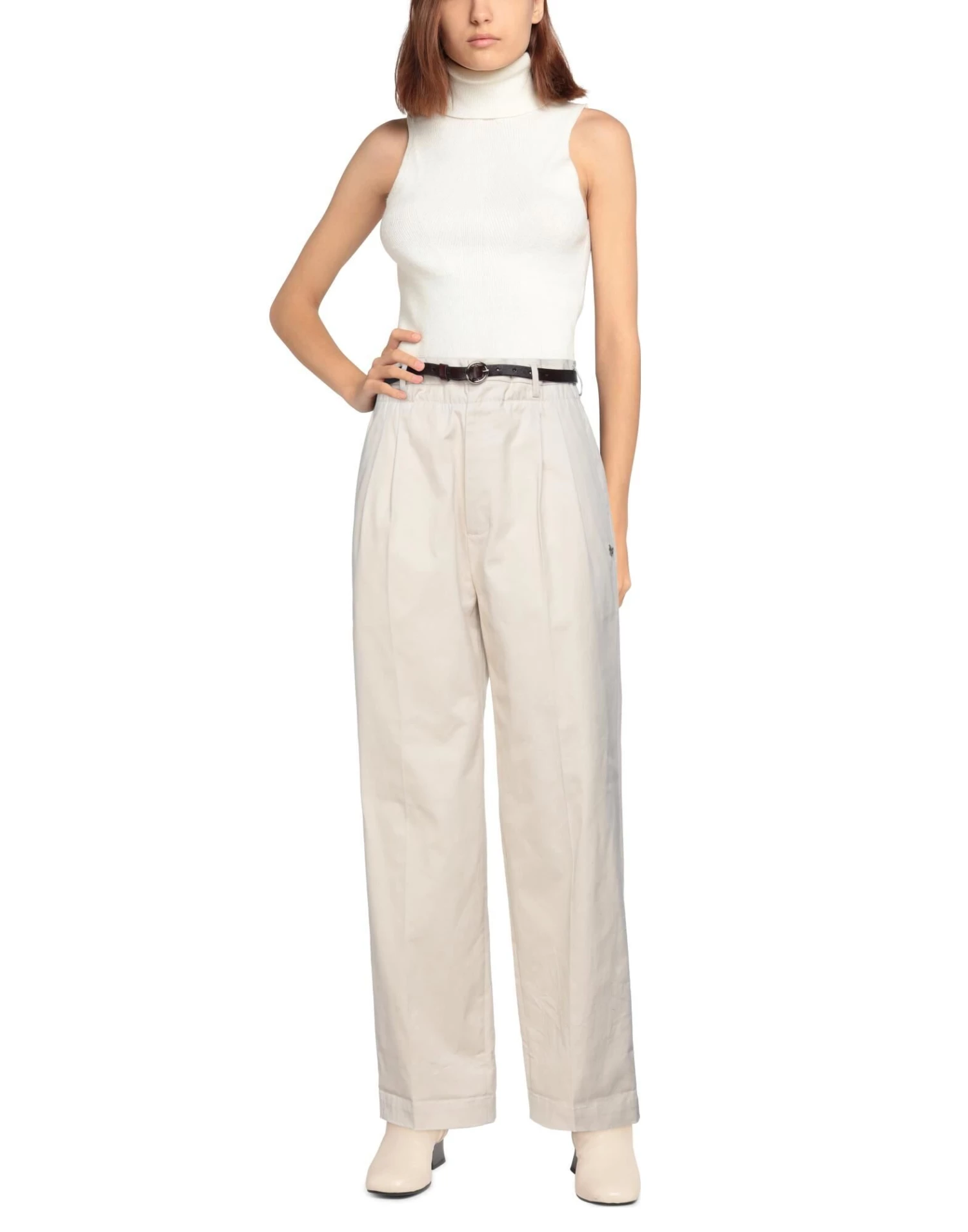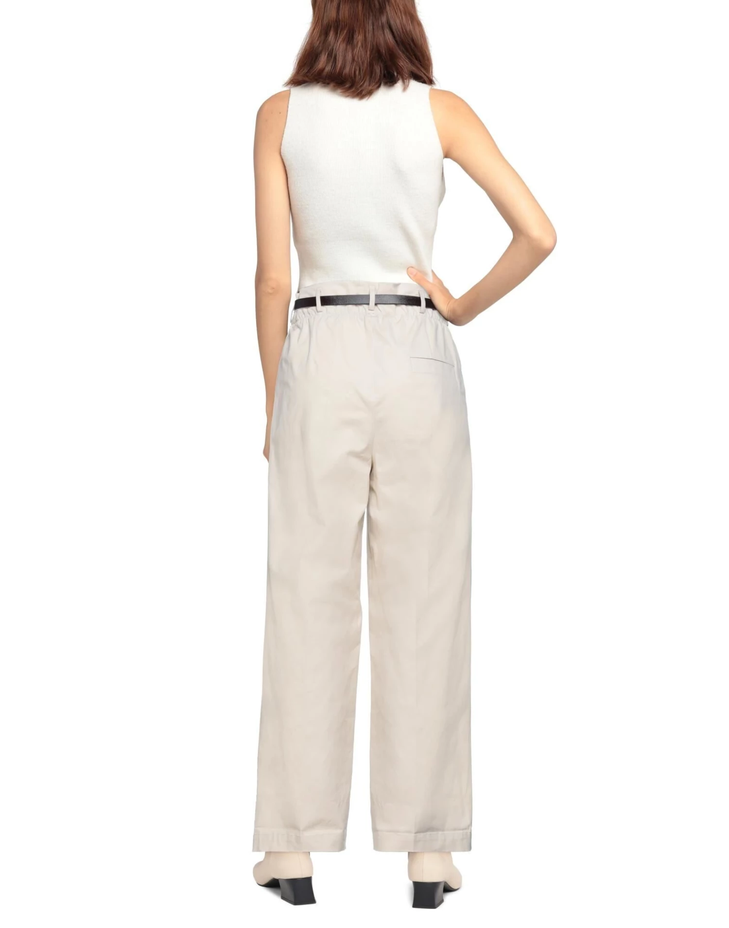 gabardine, solid color, belt, logo, high waisted, regular fit, wide leg, button, zip, multipockets, stretch