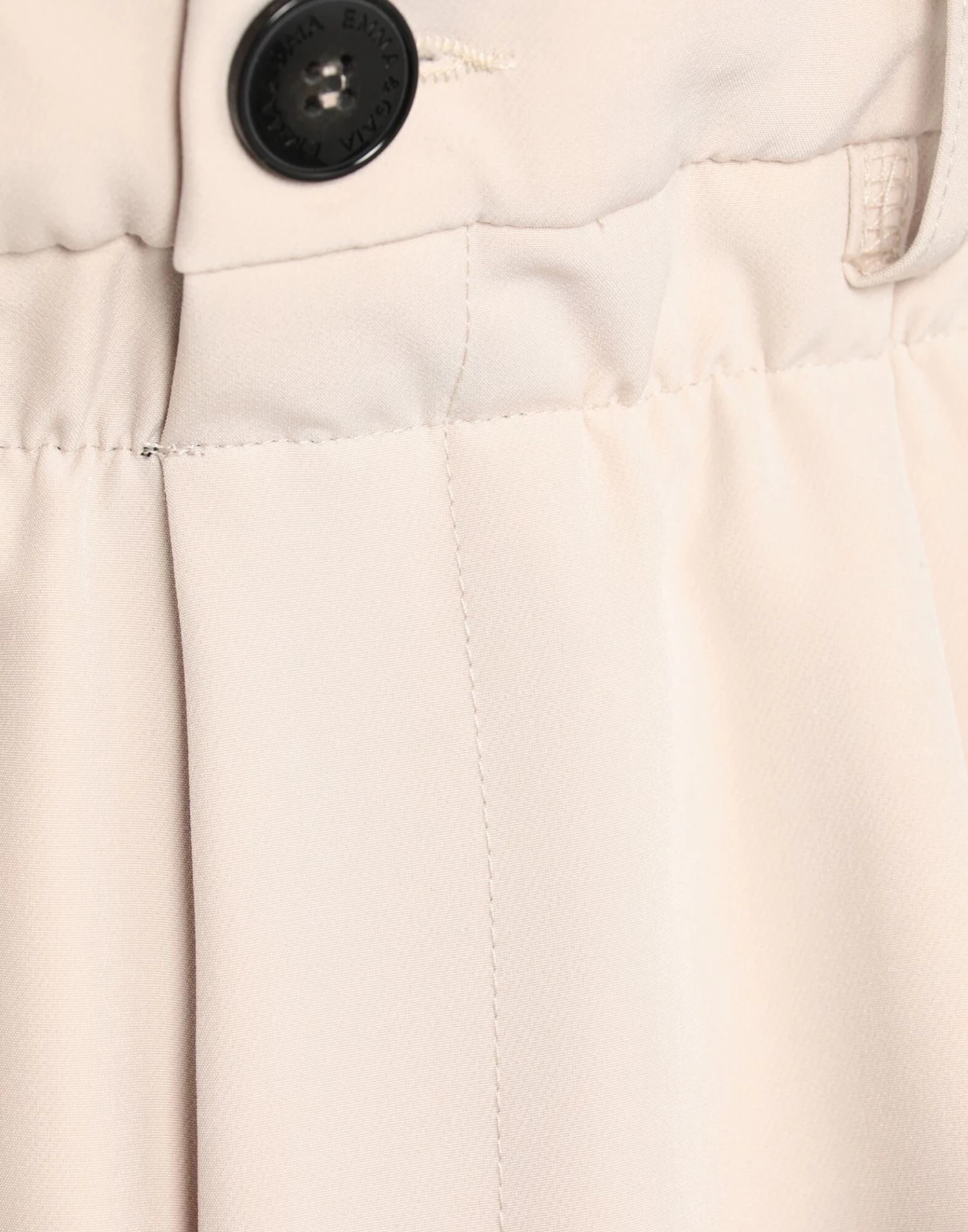 crepe, solid color, brooch, high waisted, comfort fit, wide leg, button, zip, multipockets, stretch