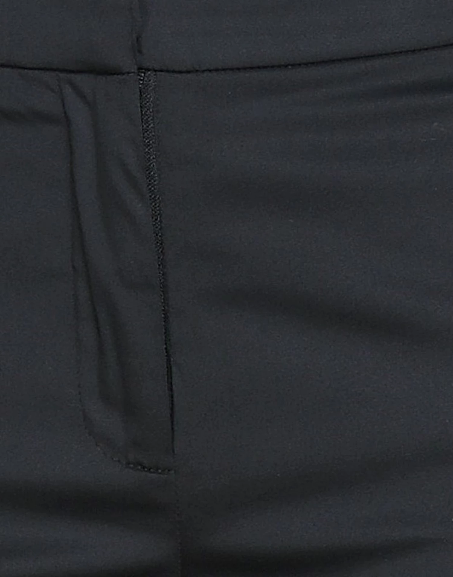 plain weave, no appliqués, solid color, mid rise, flared cut, regular fit, hook-and-eye closure, multipockets, stretch