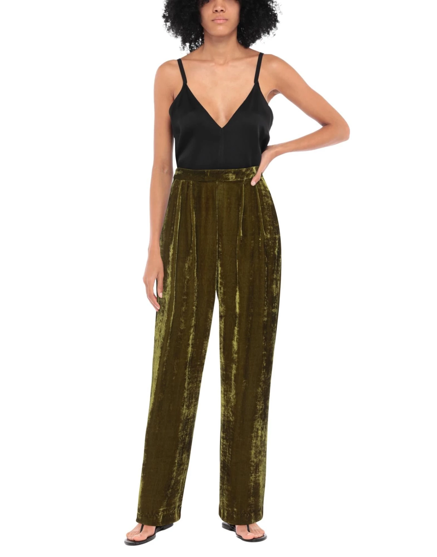 velvet, basic solid color, darts, high waisted, comfort fit, wide leg, zipper closure, multipockets
