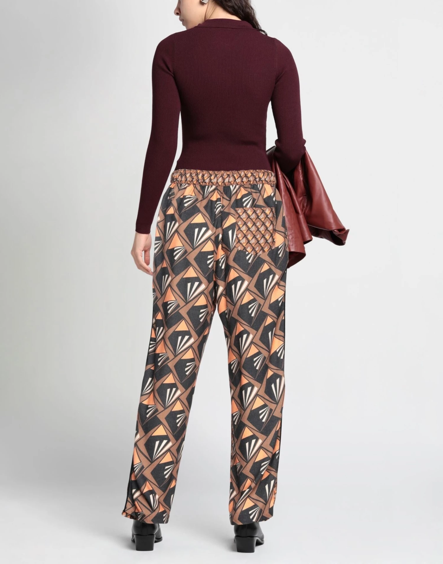 plain weave, no appliqués, multicolor pattern, high waisted, drawstring waist, tapered leg, comfort fit, multipockets