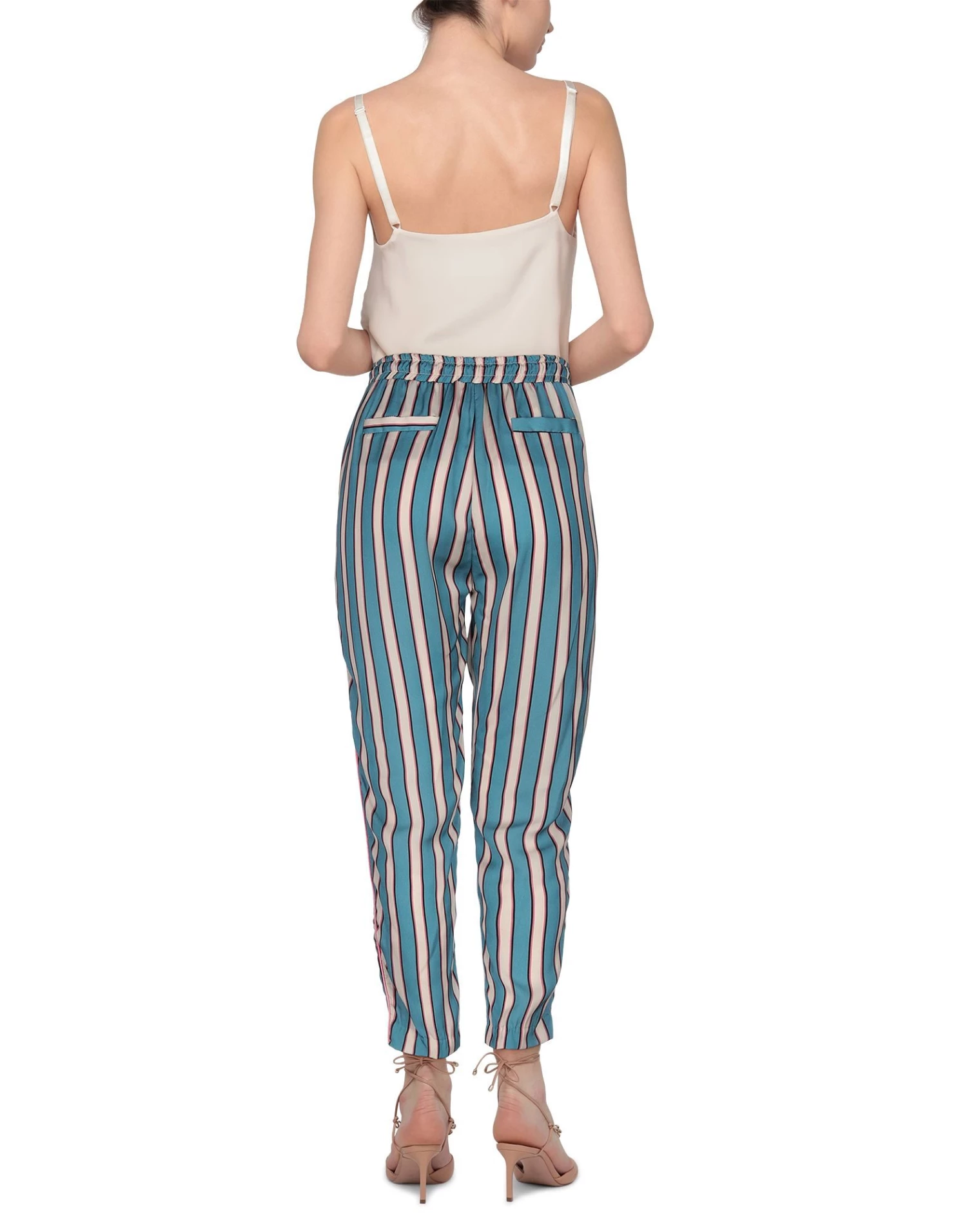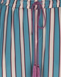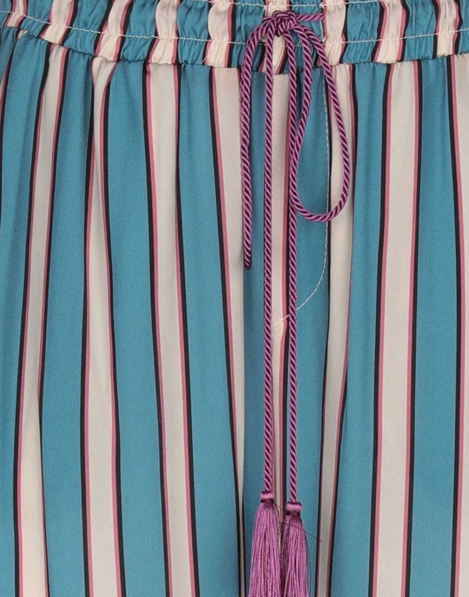 satin, stripes, no appliqués, mid rise, regular fit, tapered leg, drawstring closure, multipockets