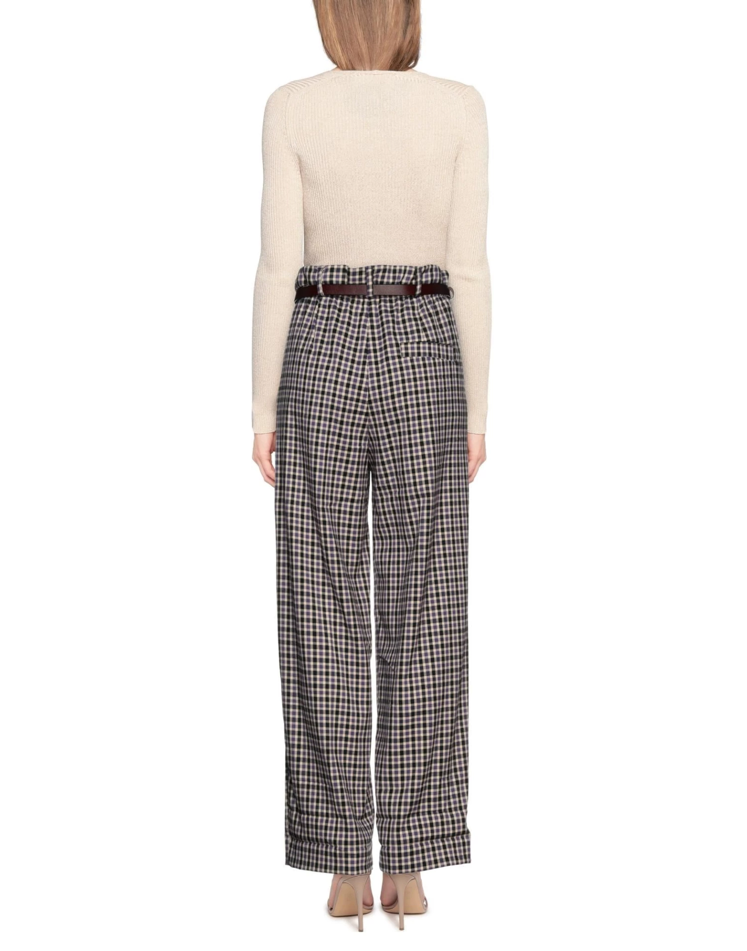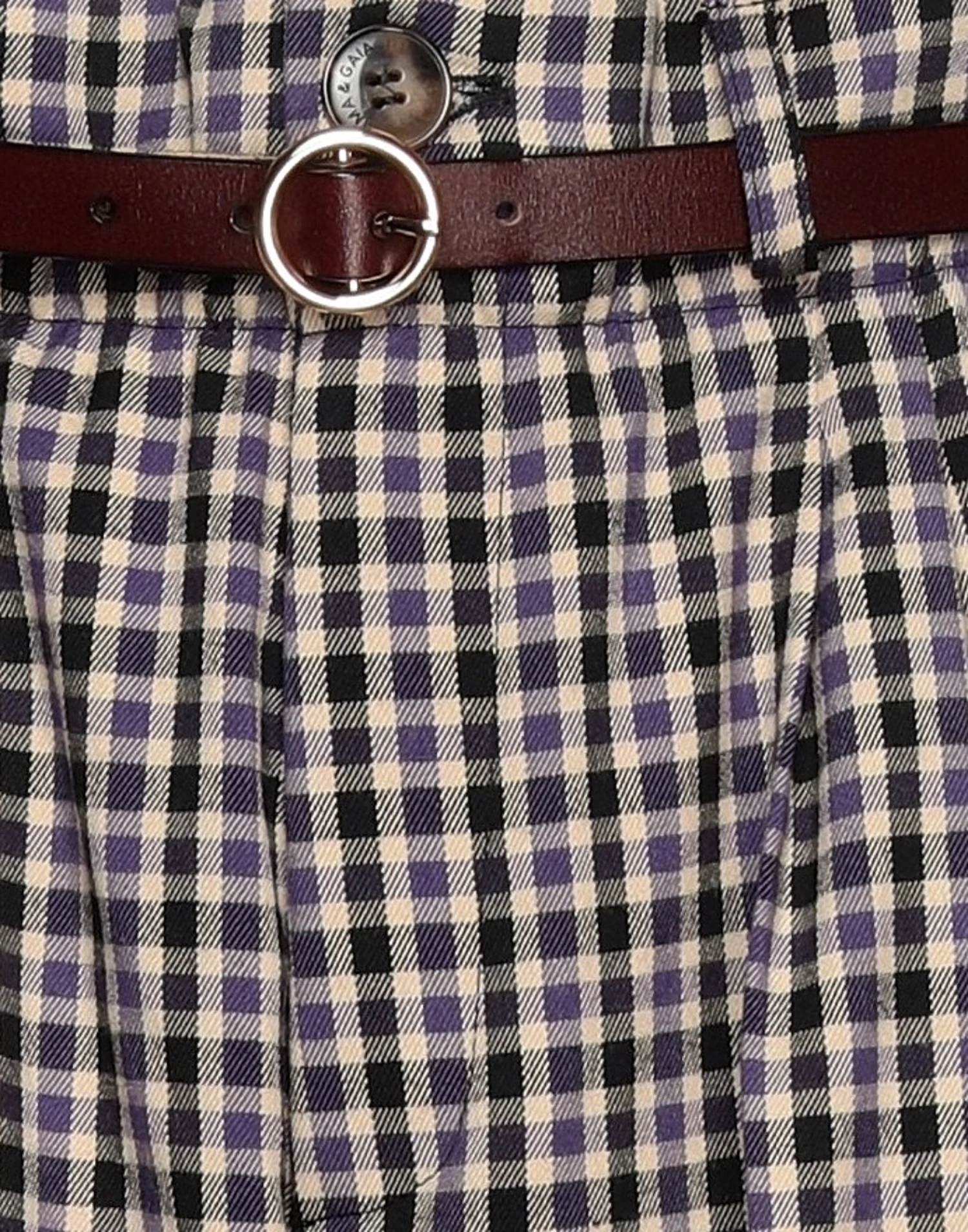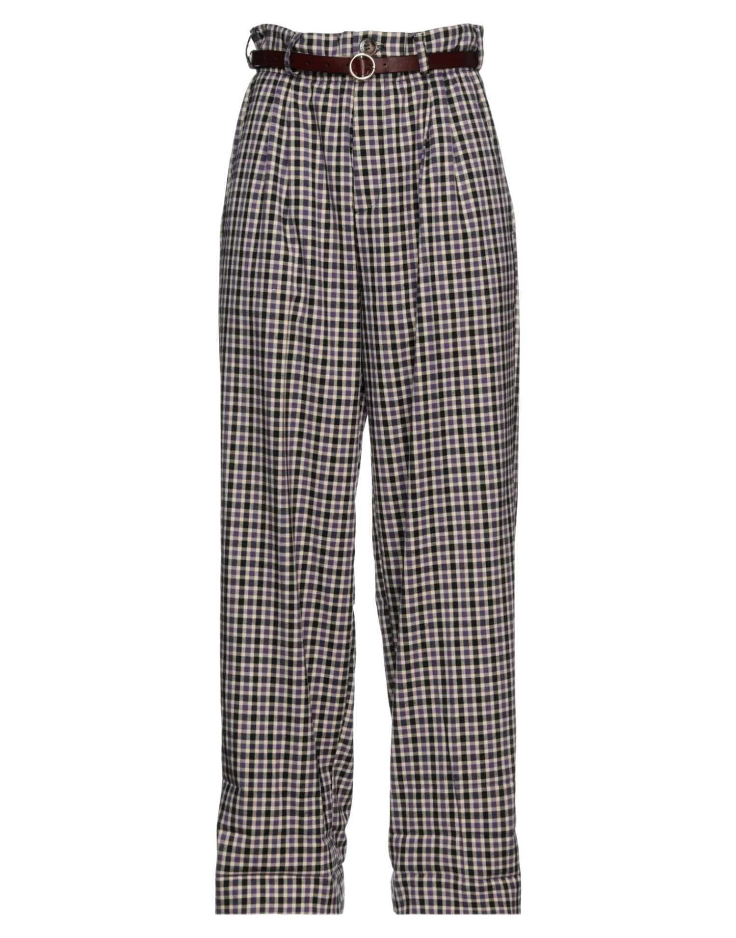 flannel, belt, checked, high waisted, belt loops, straight leg, regular fit, button closing, zipper closure, multipockets, stretch