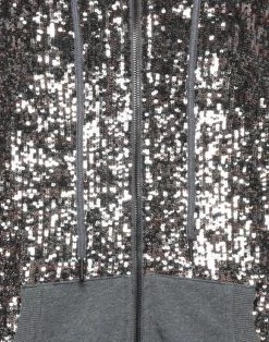 sweatshirt fleece, sequins, multicolor pattern, hooded collar, long sleeves, french terry lining, multipockets, zipper closure