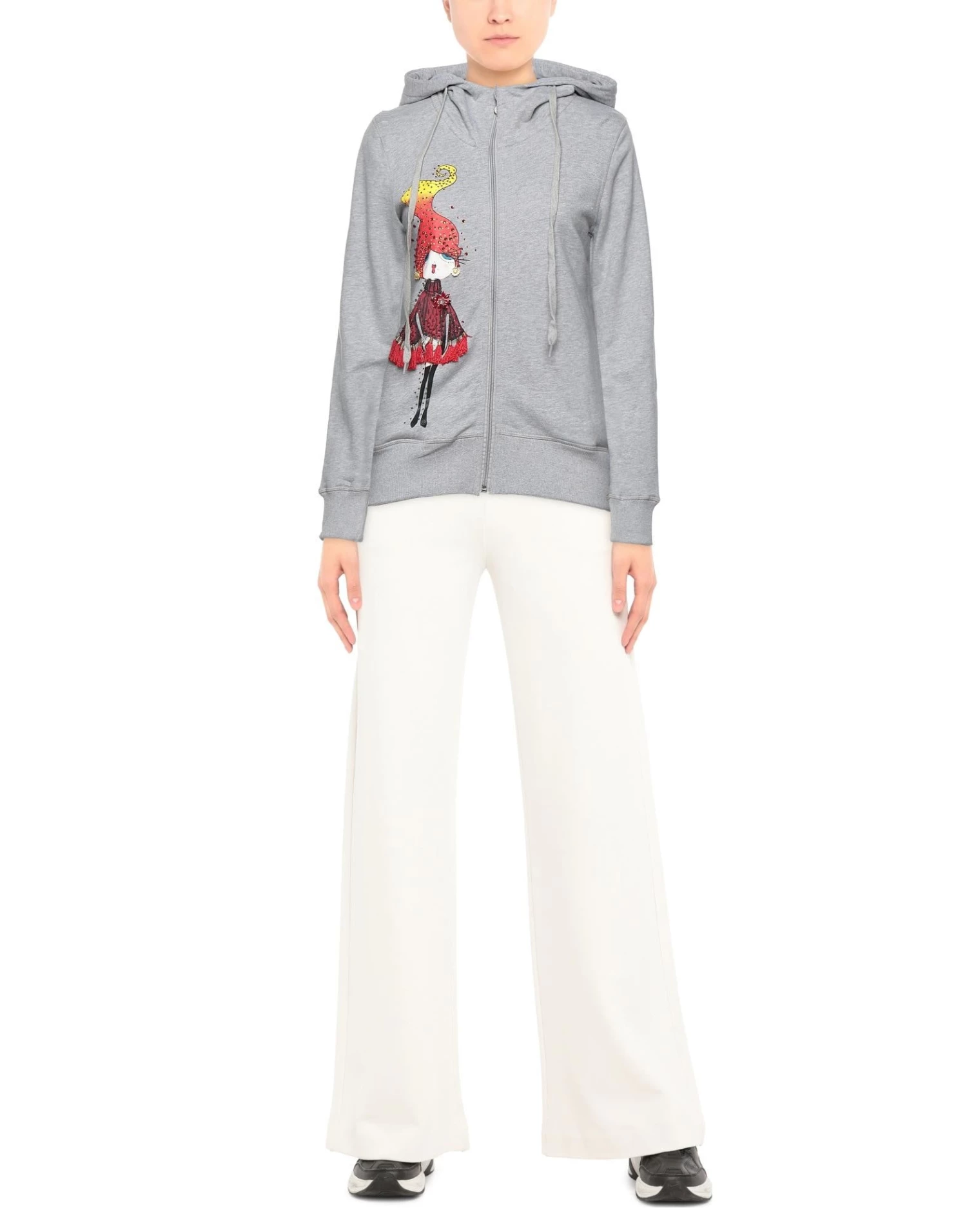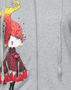 sweatshirt fleece, tassels, rhinestones, solid color with print, hooded collar, long sleeves, french terry lining, zipper closure, multipockets