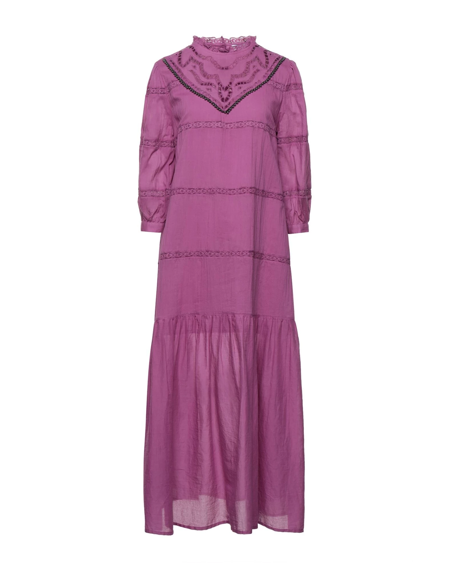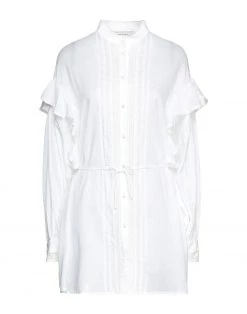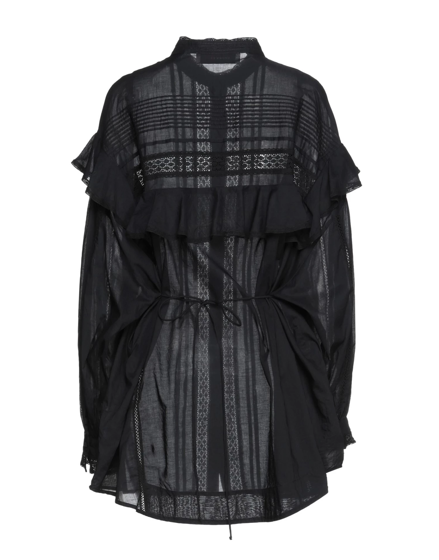 lace, crepe, folds, ruffles, solid color, mandarin collar, long sleeves, buttoned cuffs, button closing, no pockets