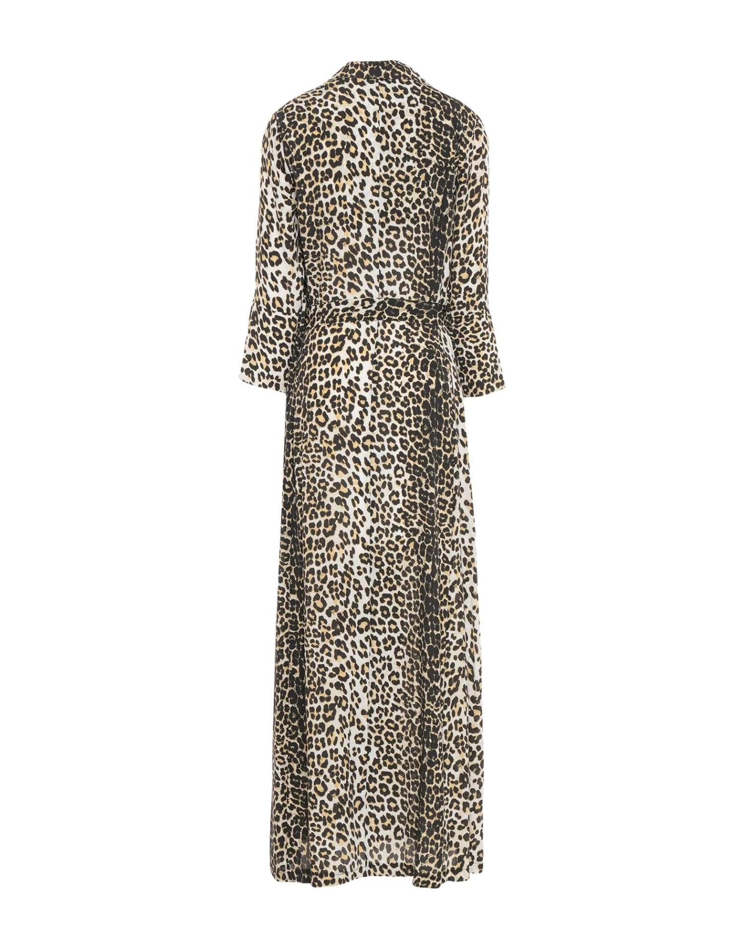 crepe, belt, leopard-print, lapel collar, long sleeves, no pockets, dual side vents, front closure, button closing, unlined