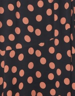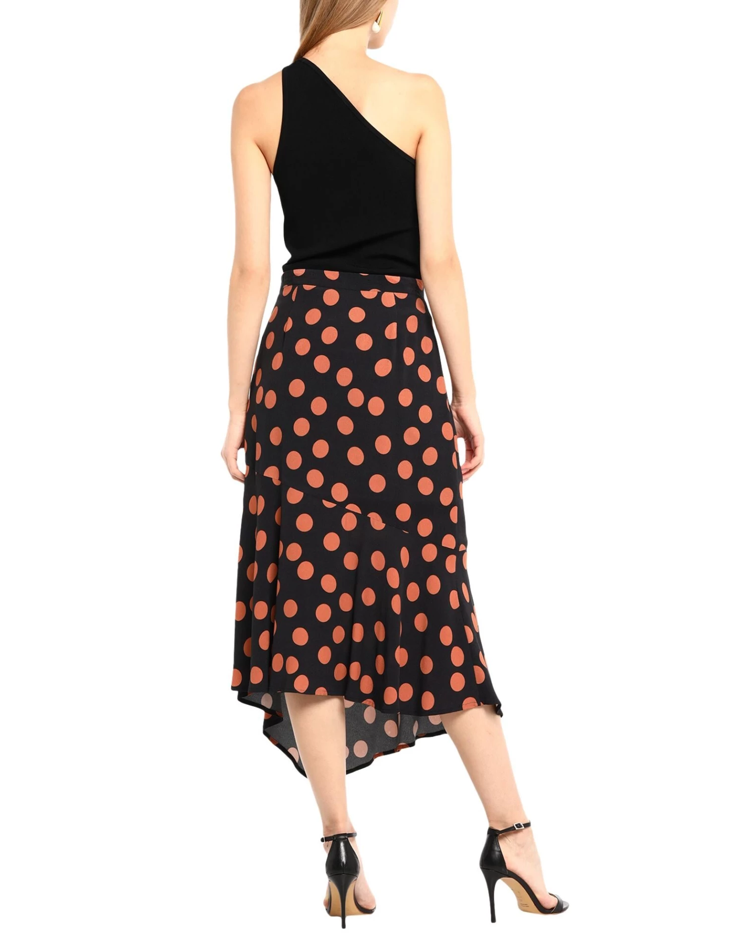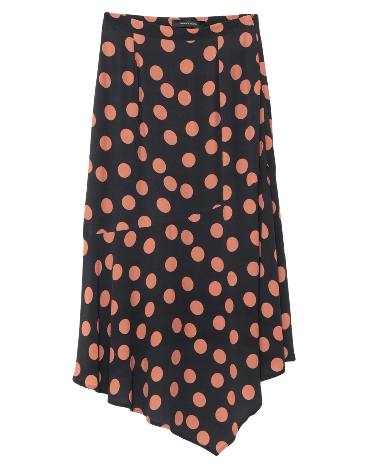 crepe, no appliqués, polka-dot, zipper closure, no pockets, partially lined interior, asymmetrical hemline