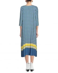 plain weave, no appliqués, floral design, round collar, 3/4 length sleeves, unlined, multipockets