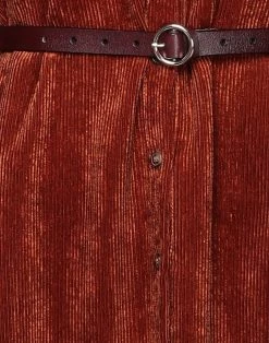 velvet, ribbed, belt, solid color, classic neckline, long sleeves, multipockets, button closing, unlined