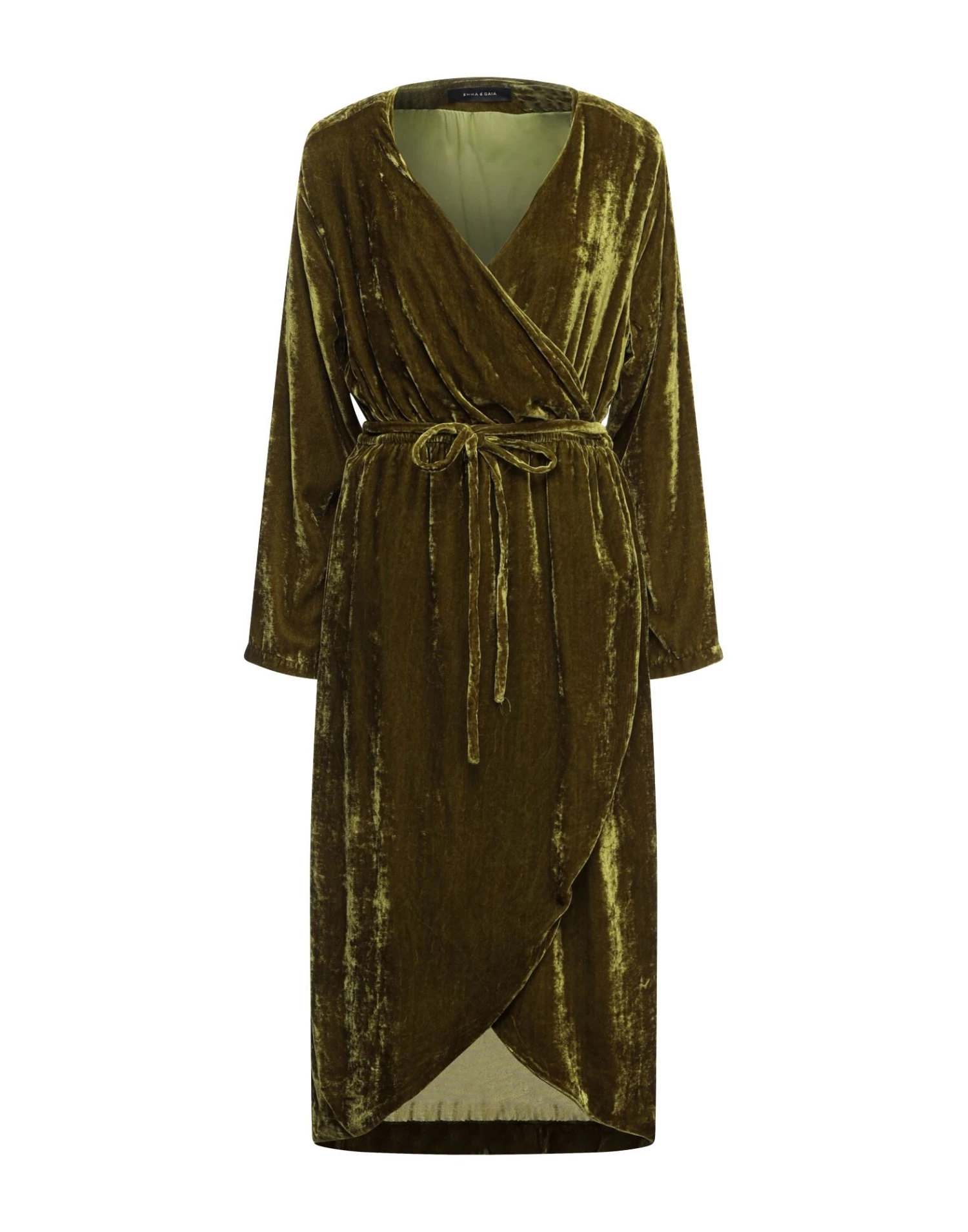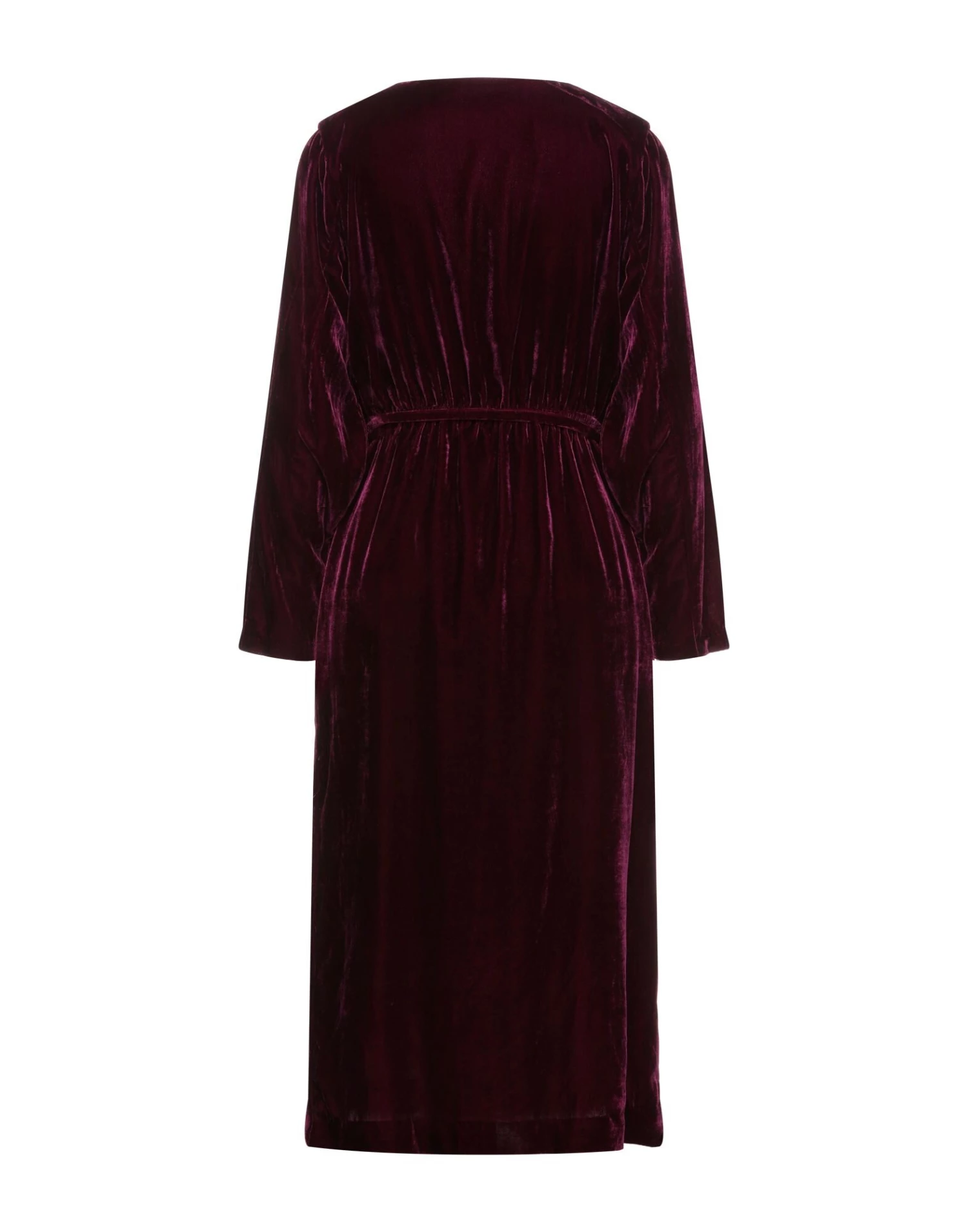 velvet, no appliqués, deep neckline, long sleeves, fully lined, self-tie closure, no pockets, solid color