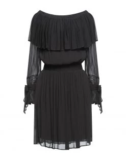 crepe, no appliqués, solid color, wide neckline, long sleeves, fully lined, zipper closure, no pockets