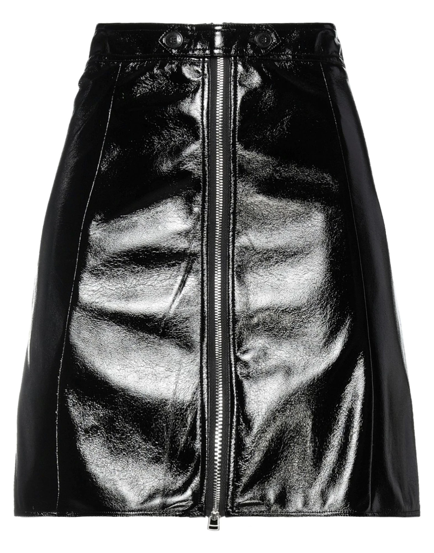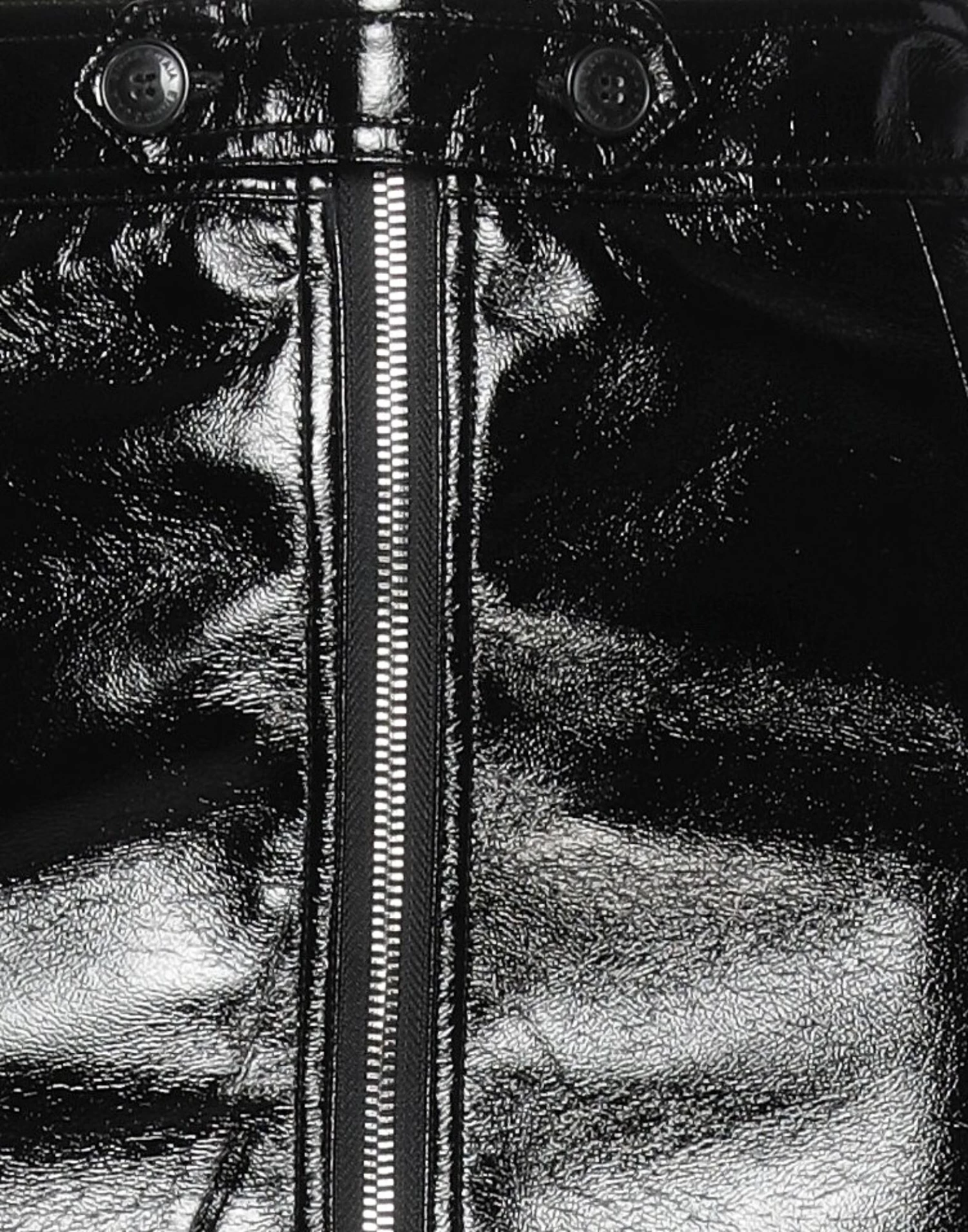 coated fabric, no appliqués, solid color, fully lined, 2 buttons, zipper closure, no pockets