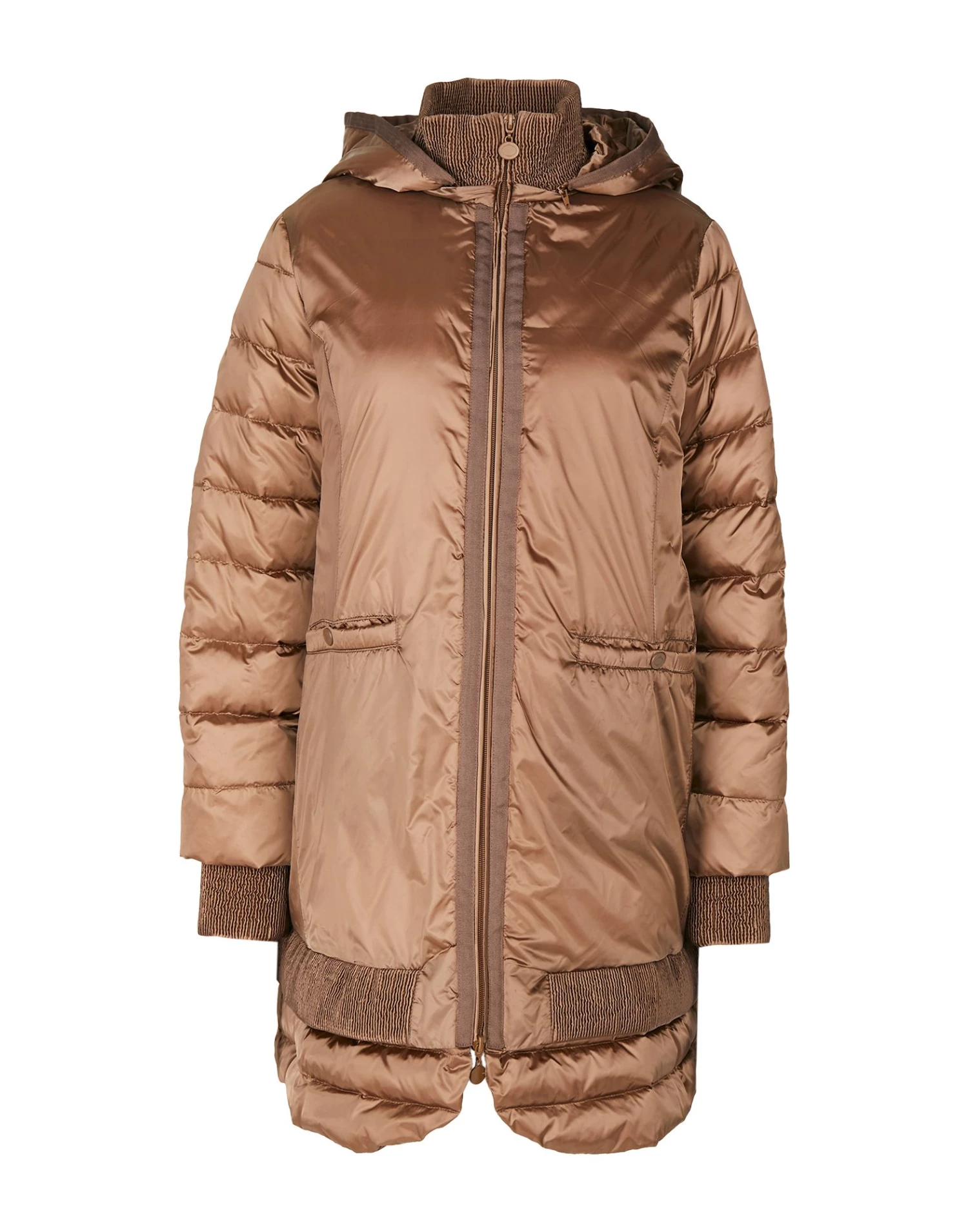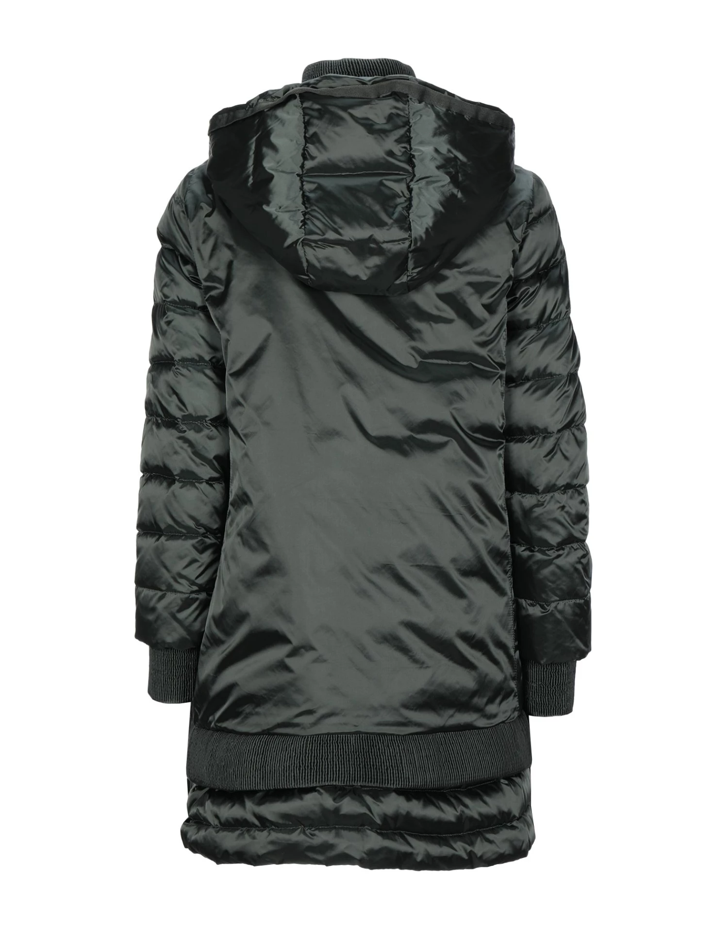techno fabric, duck down filling, logo, detachable application, basic solid color, single-breasted , zip, hooded collar, multipockets, long sleeves, contains non-textile parts of animal origin