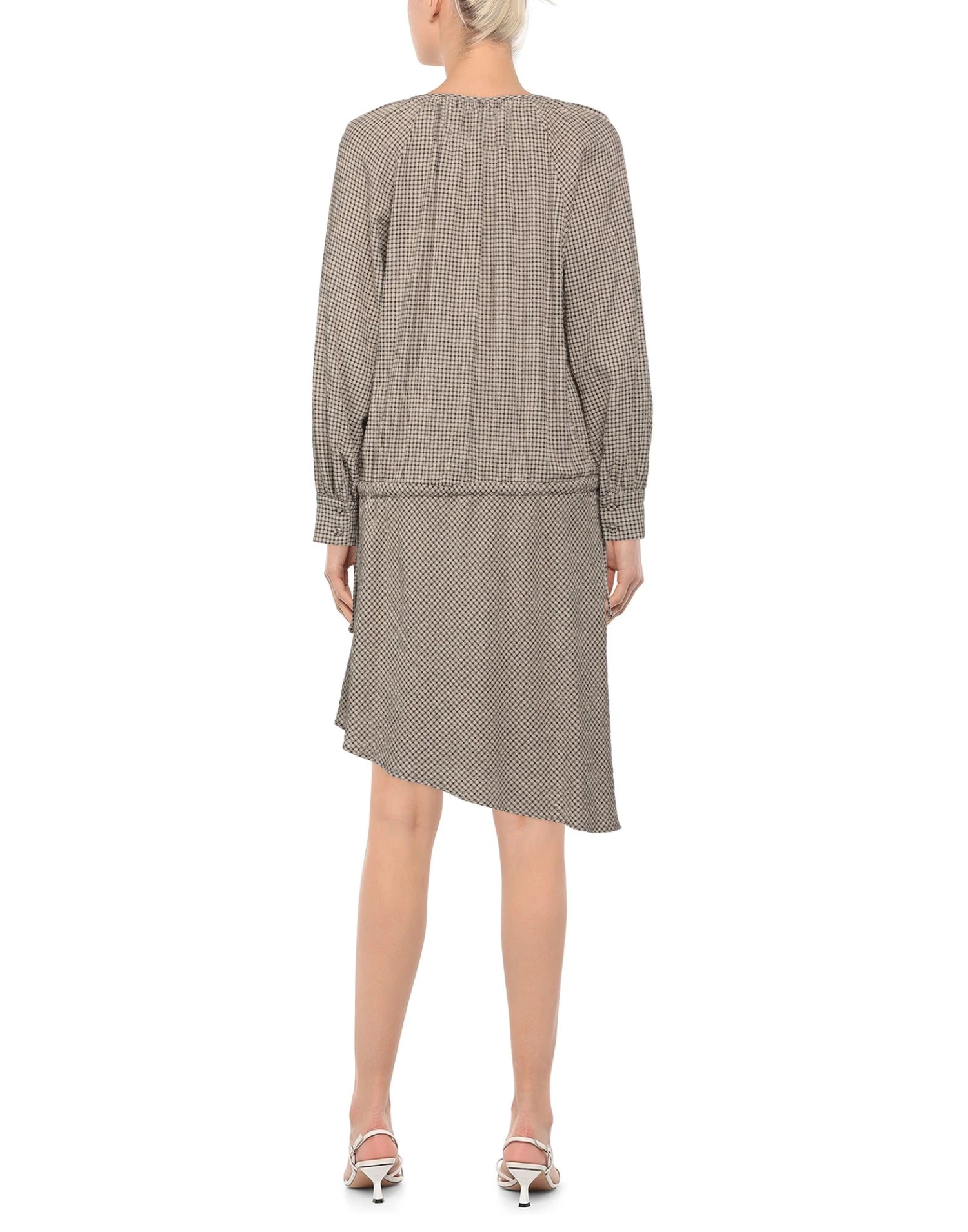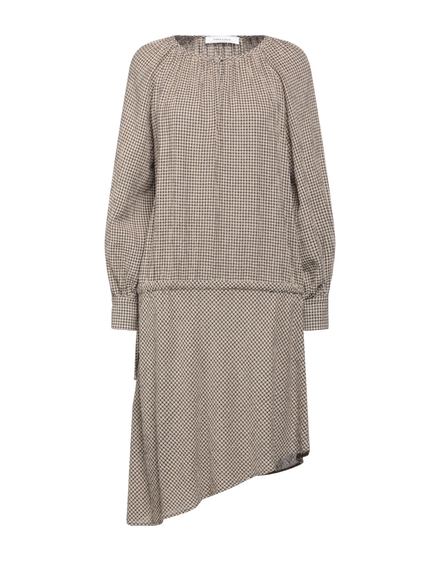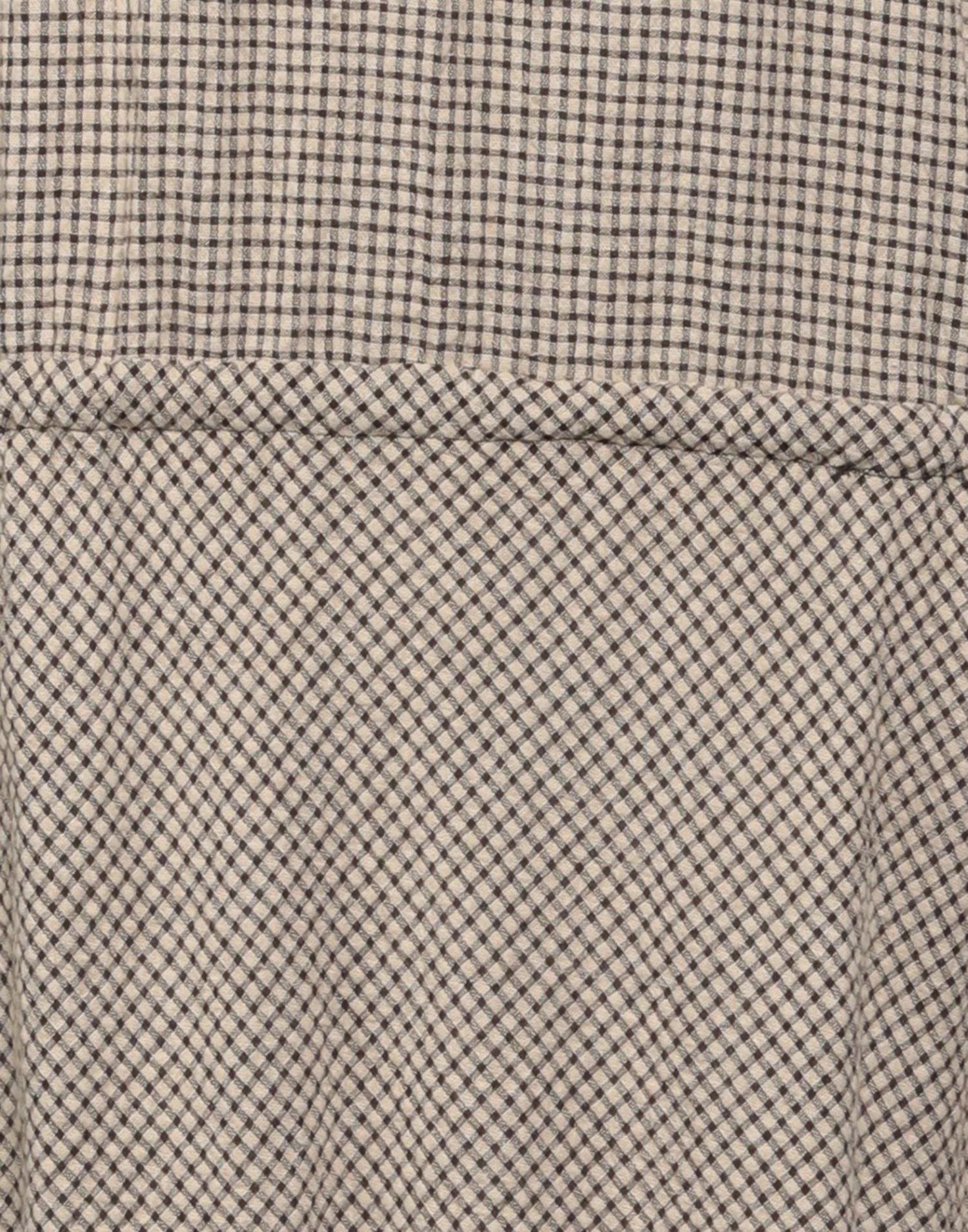 plain weave, belt, checked, round collar, long sleeves, buttoned cuffs, unlined, no pockets, trapeze style