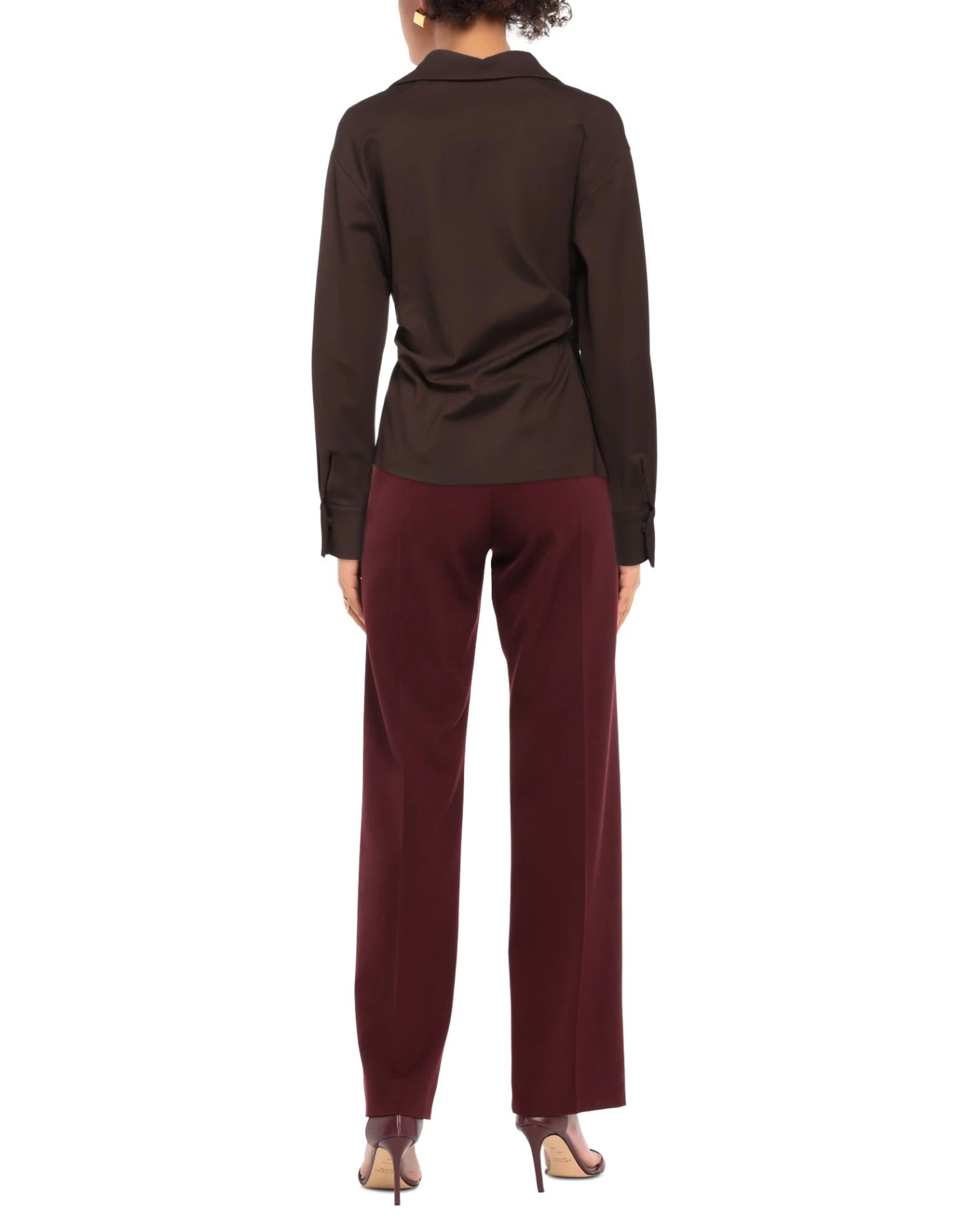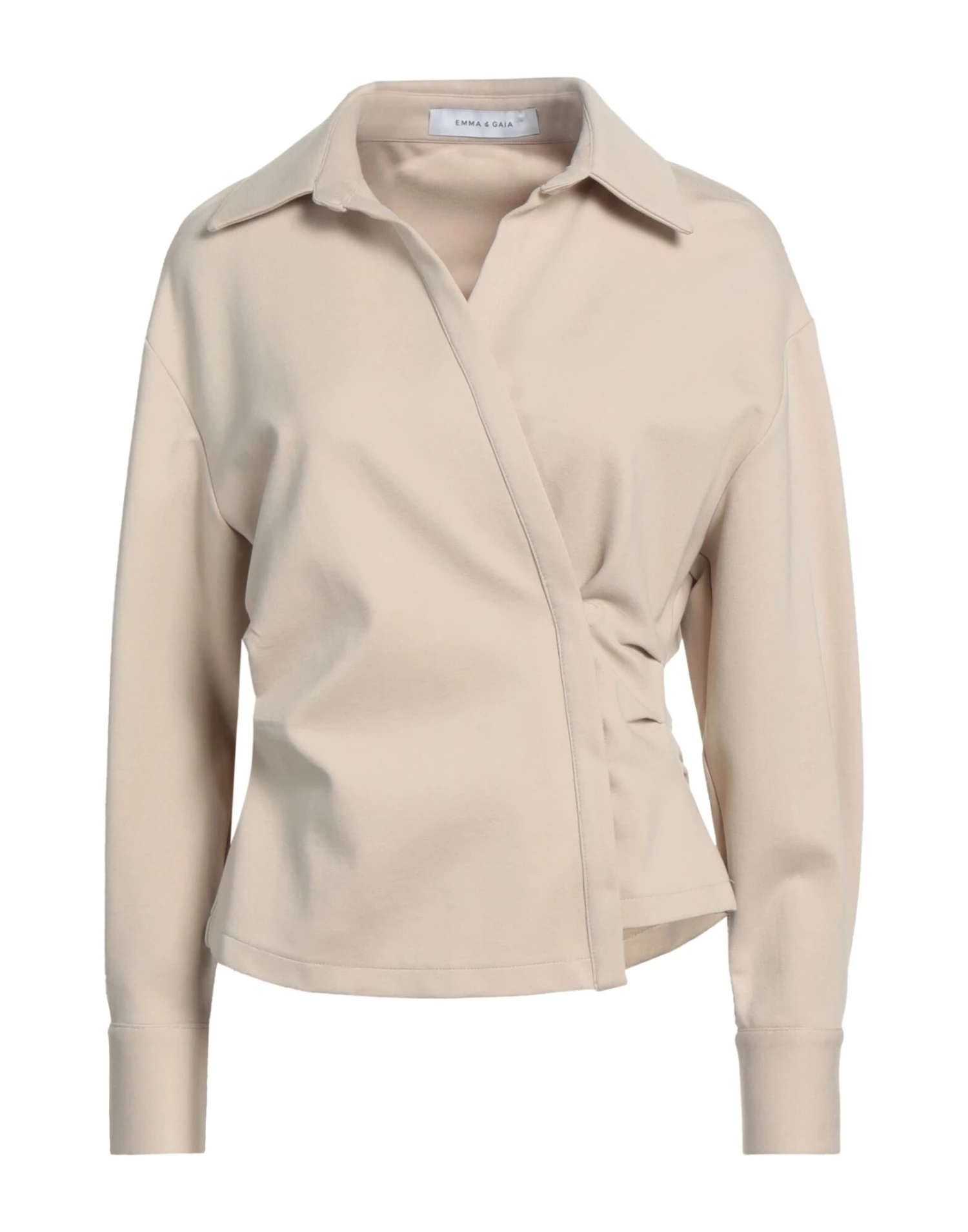 jersey, no appliqués, solid color, polo collar, long sleeves, snap button cuffs, snap buttons fastening, no pockets, stretch