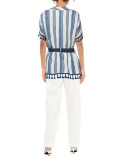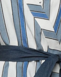 plain weave, belt, tassels, stripes, deep neckline, short sleeves, unlined, no pockets