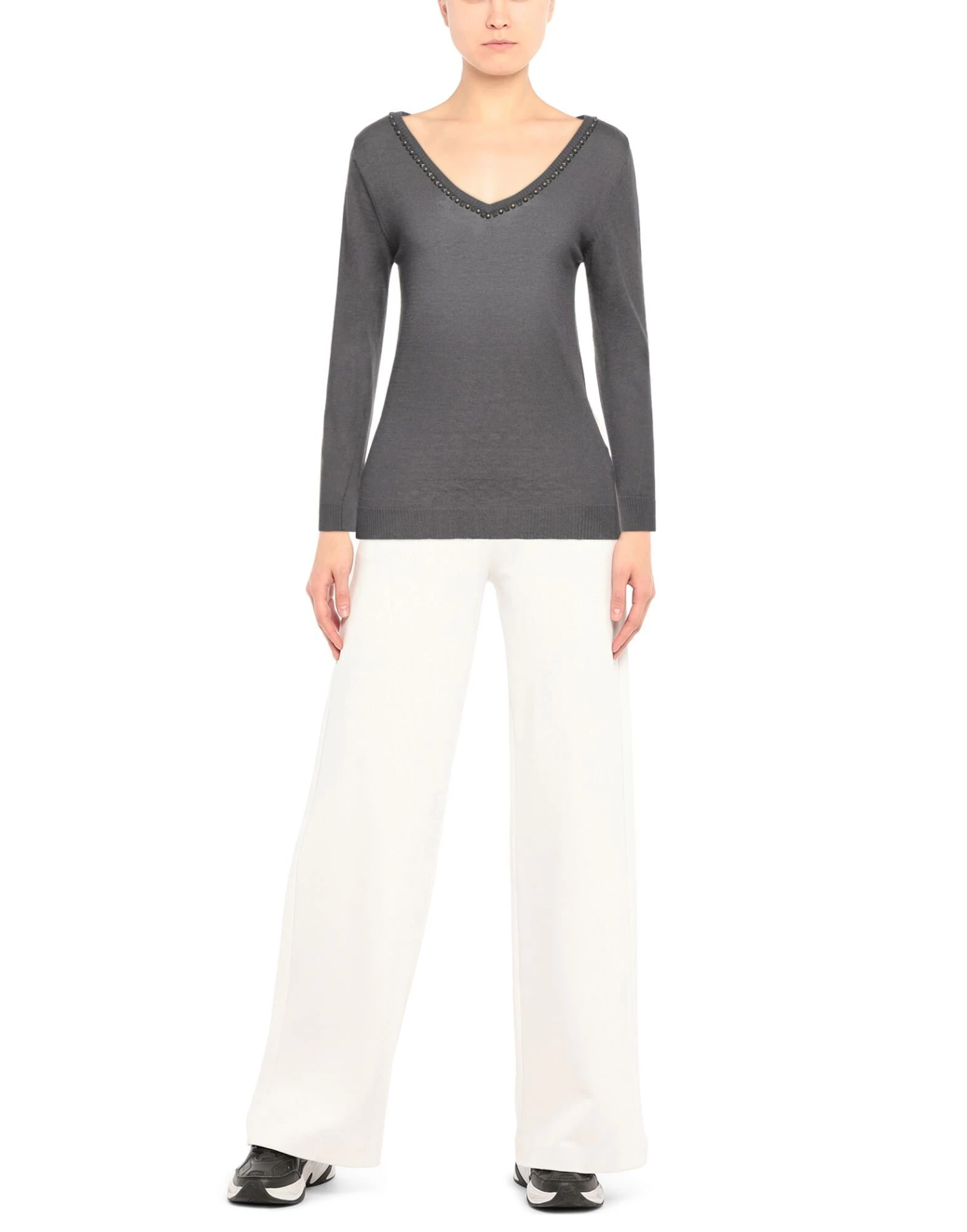 knitted, lightweight knit, contrasting applications, solid colour with appliqués, v-neck, long sleeves, no pockets