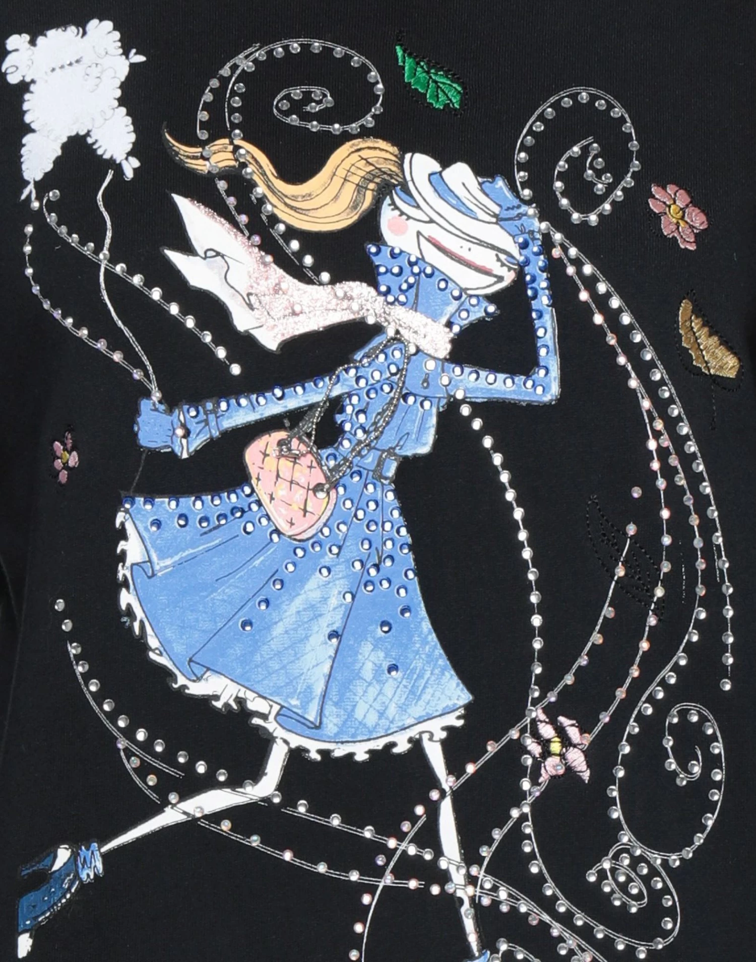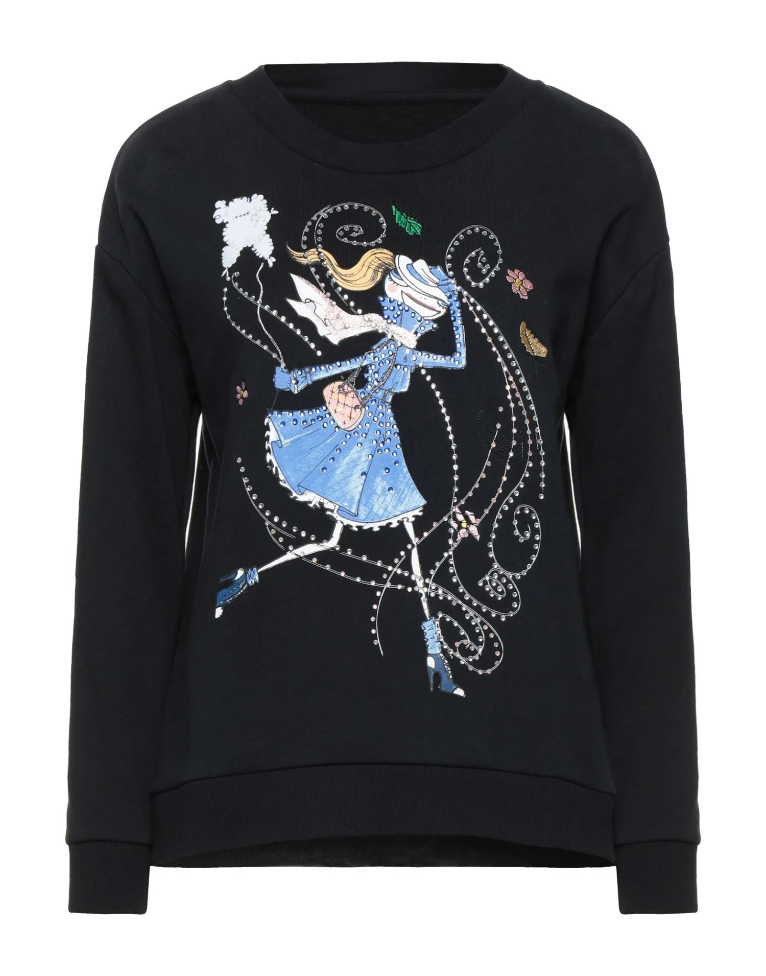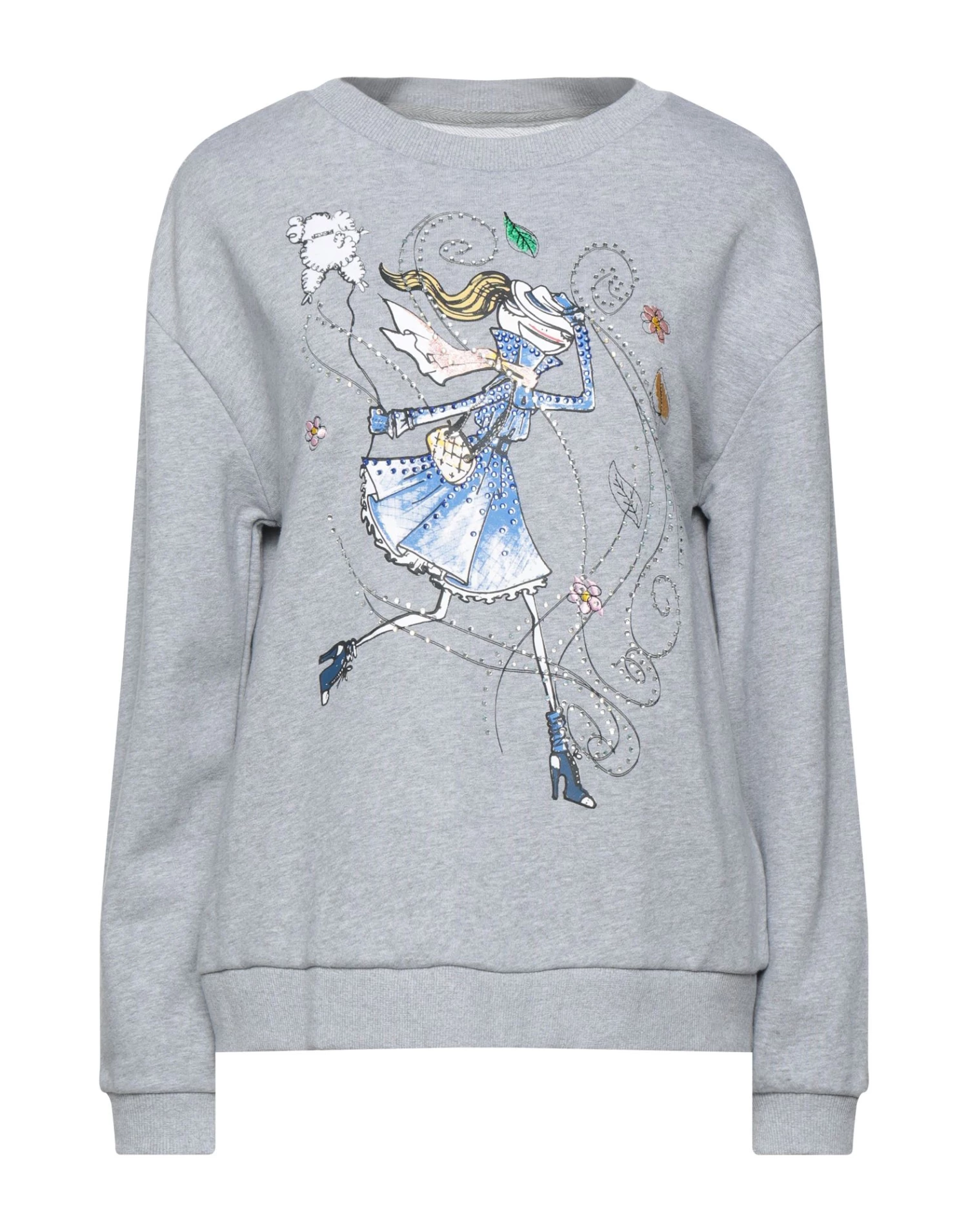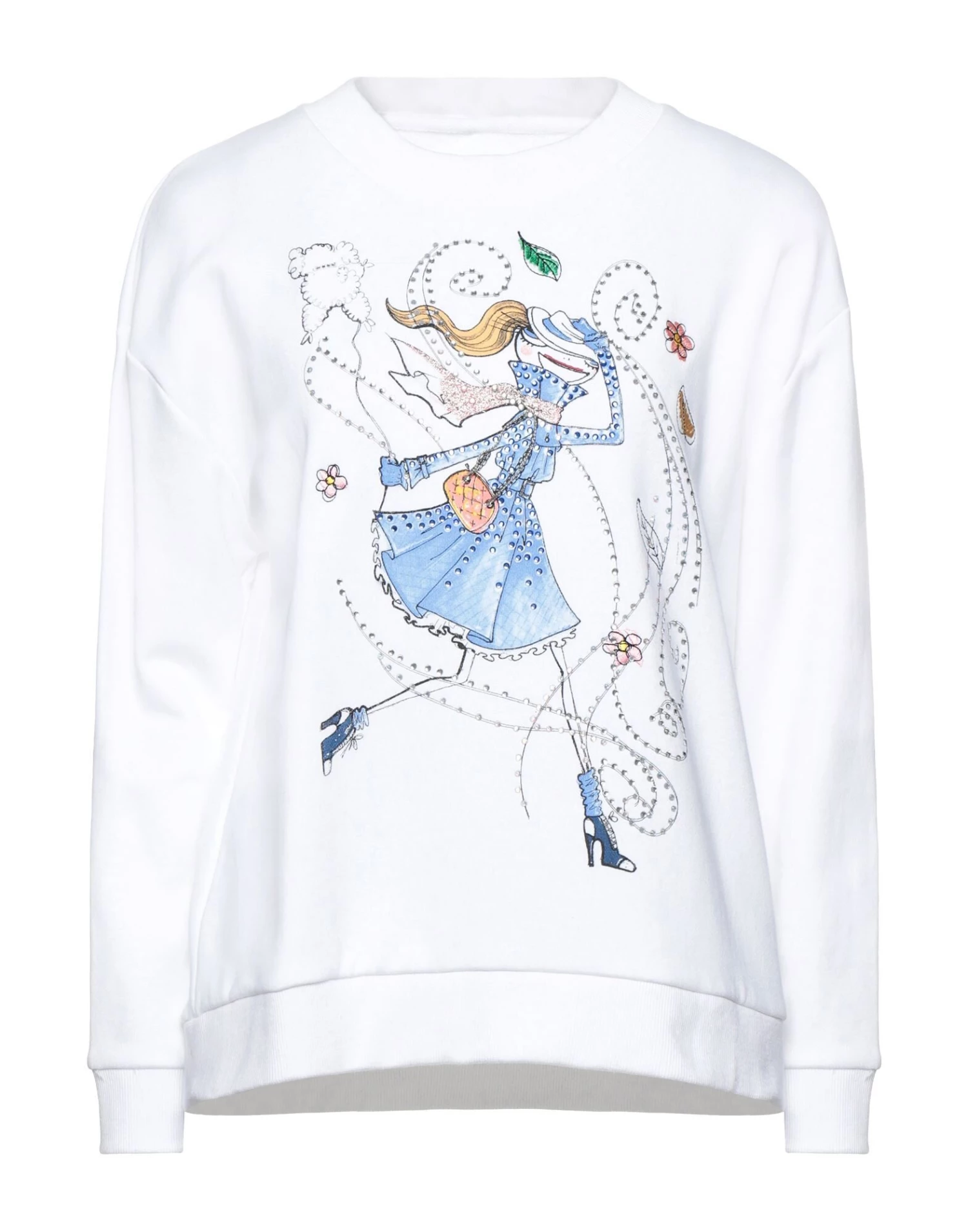 sweatshirt fleece, rhinestones, print, solid color, round collar, long sleeves, french terry lining, no pockets