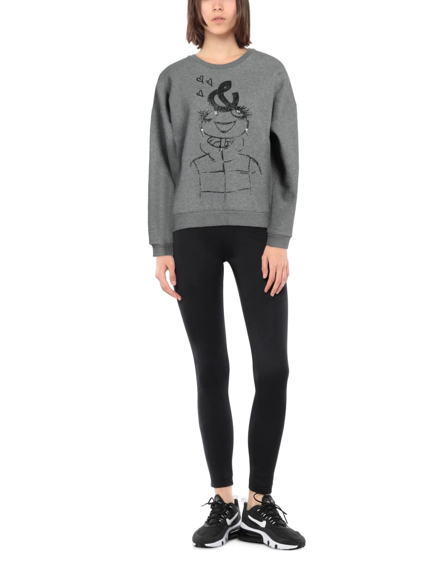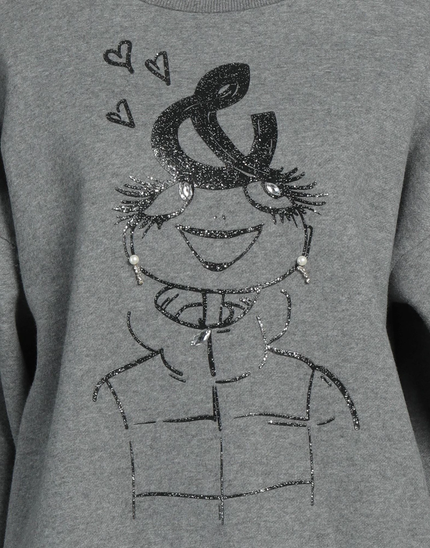 sweatshirt fleece, print, rhinestones, solid colour with appliqués, round collar, long sleeves, fleece lining, no pockets