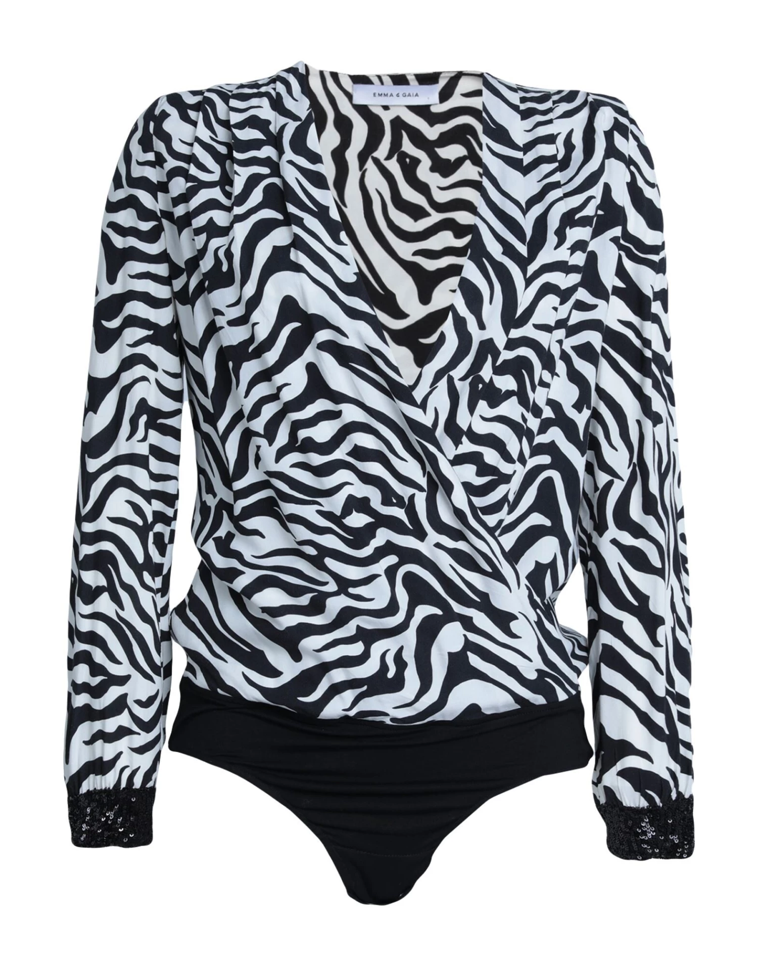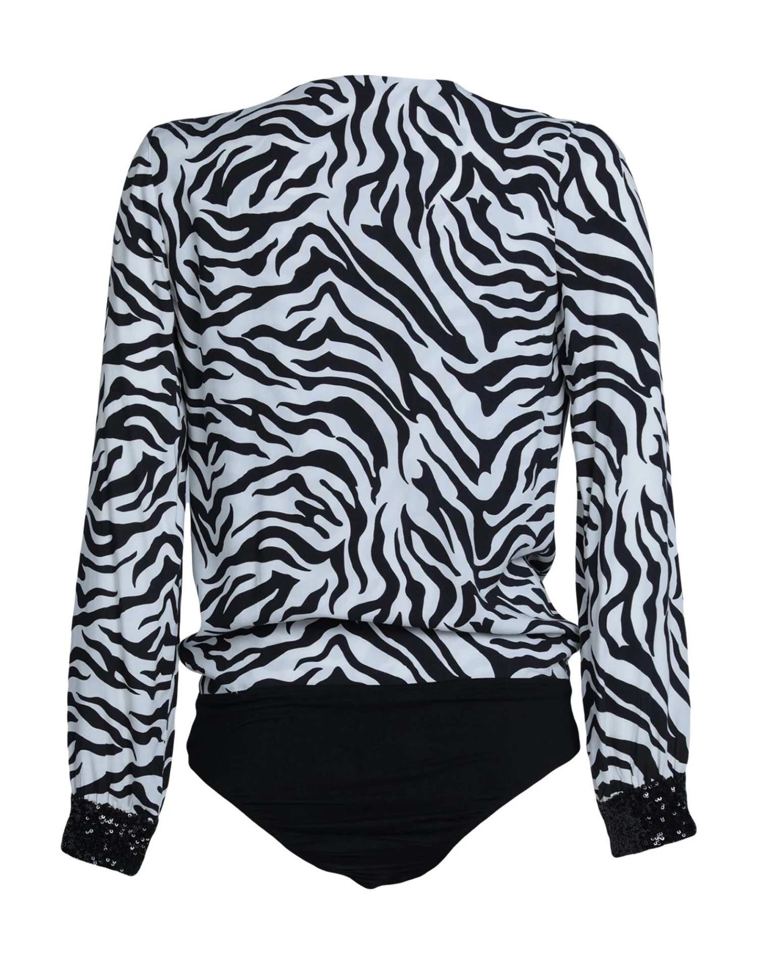 jersey, no appliqués, zebra stripes, deep neckline, long sleeves, no pockets, crotch of body