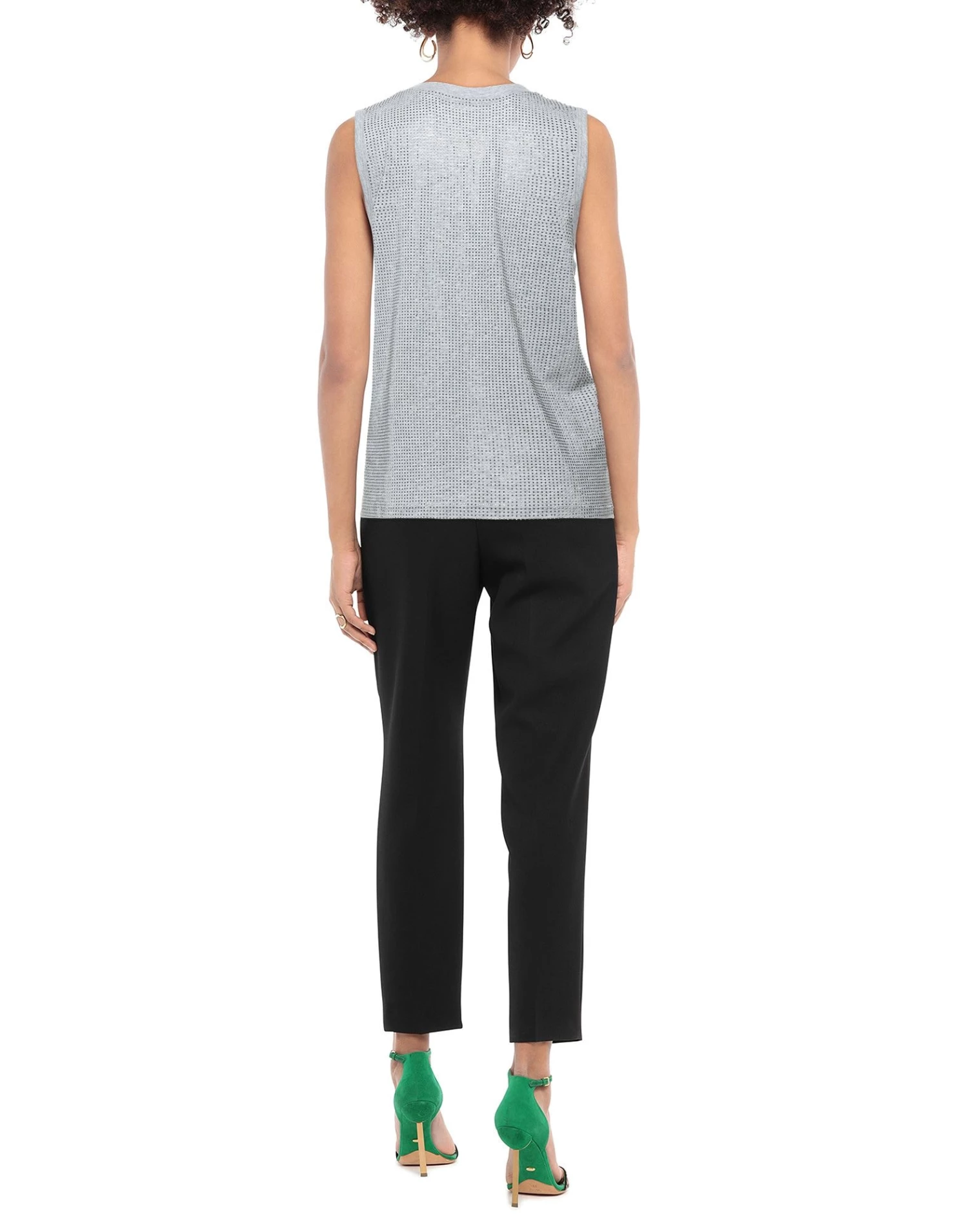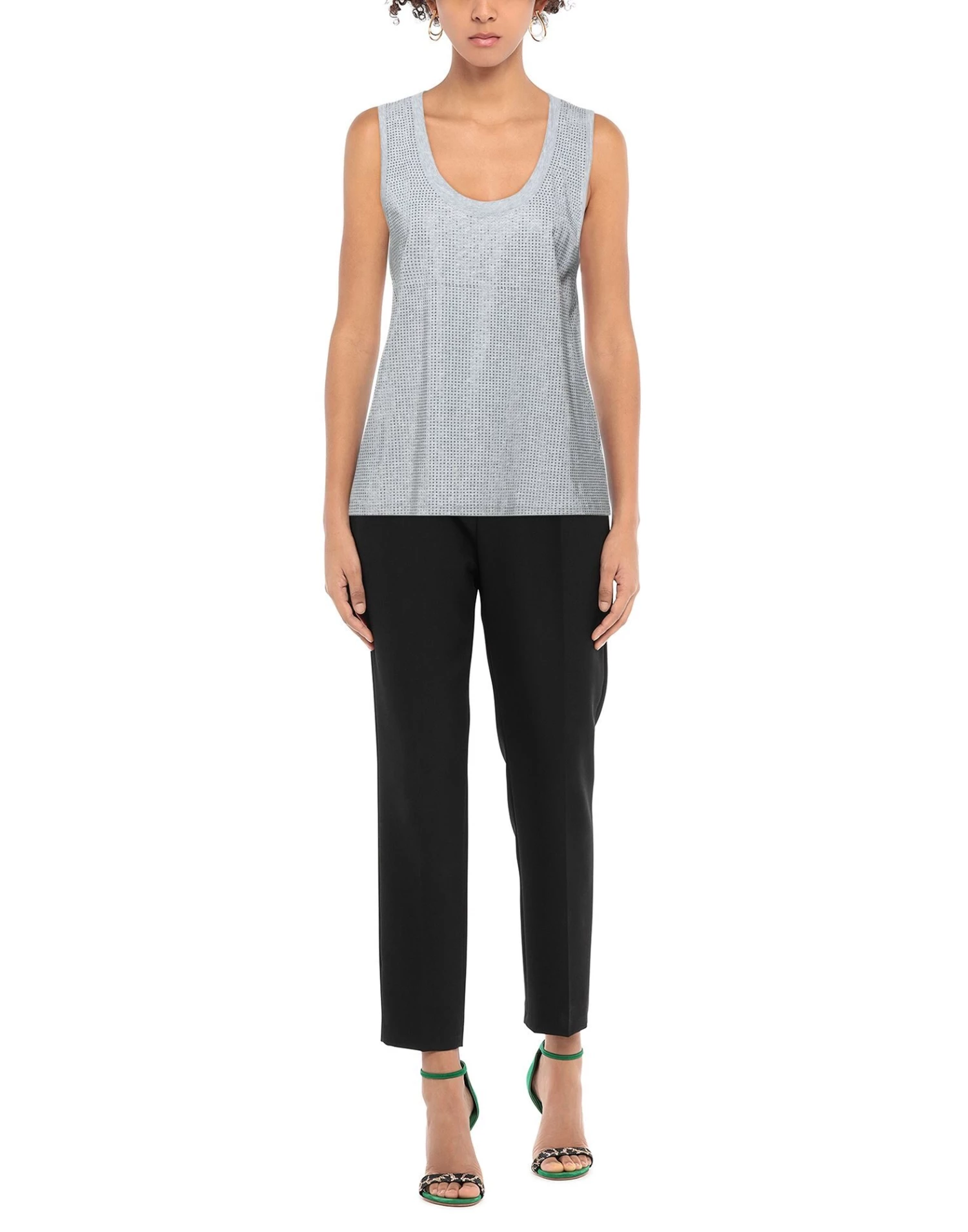 jersey, rhinestones, solid color, round collar, sleeveless, no pockets