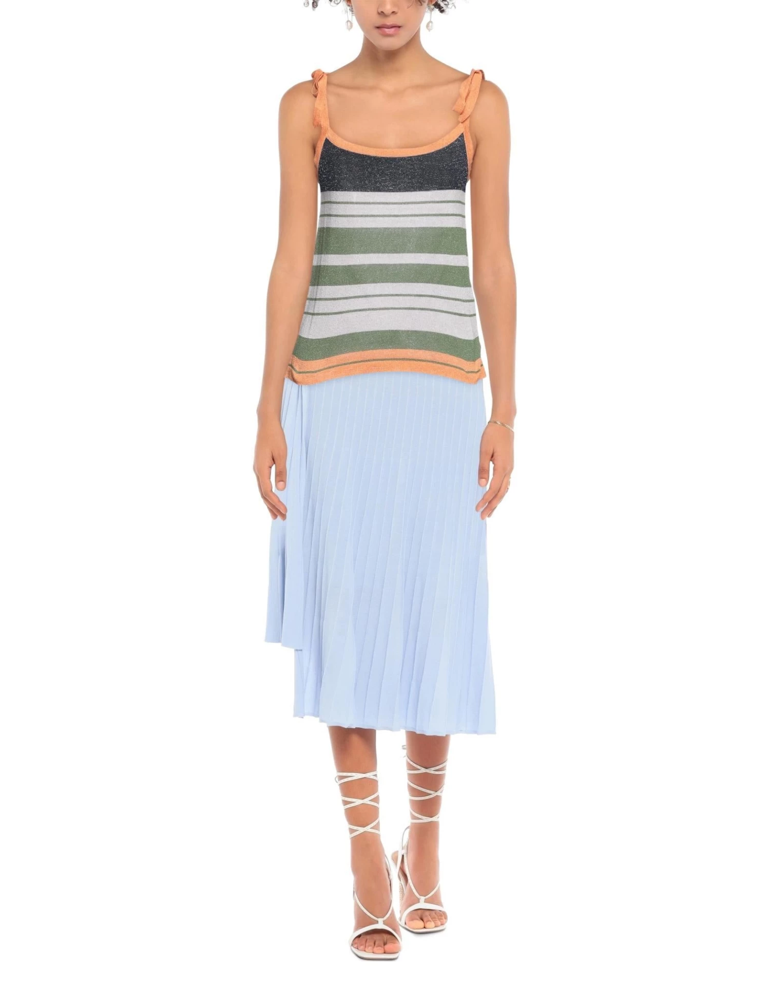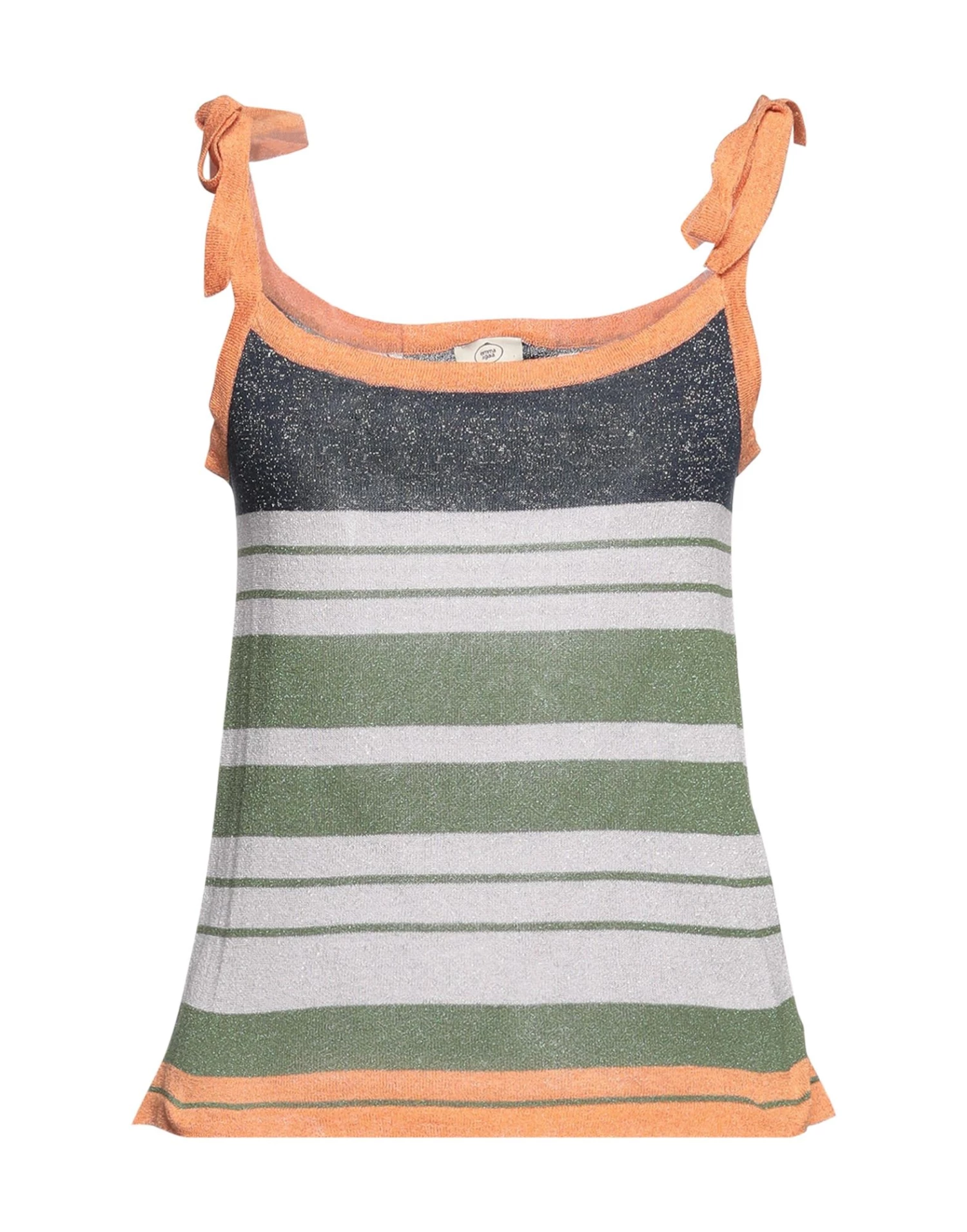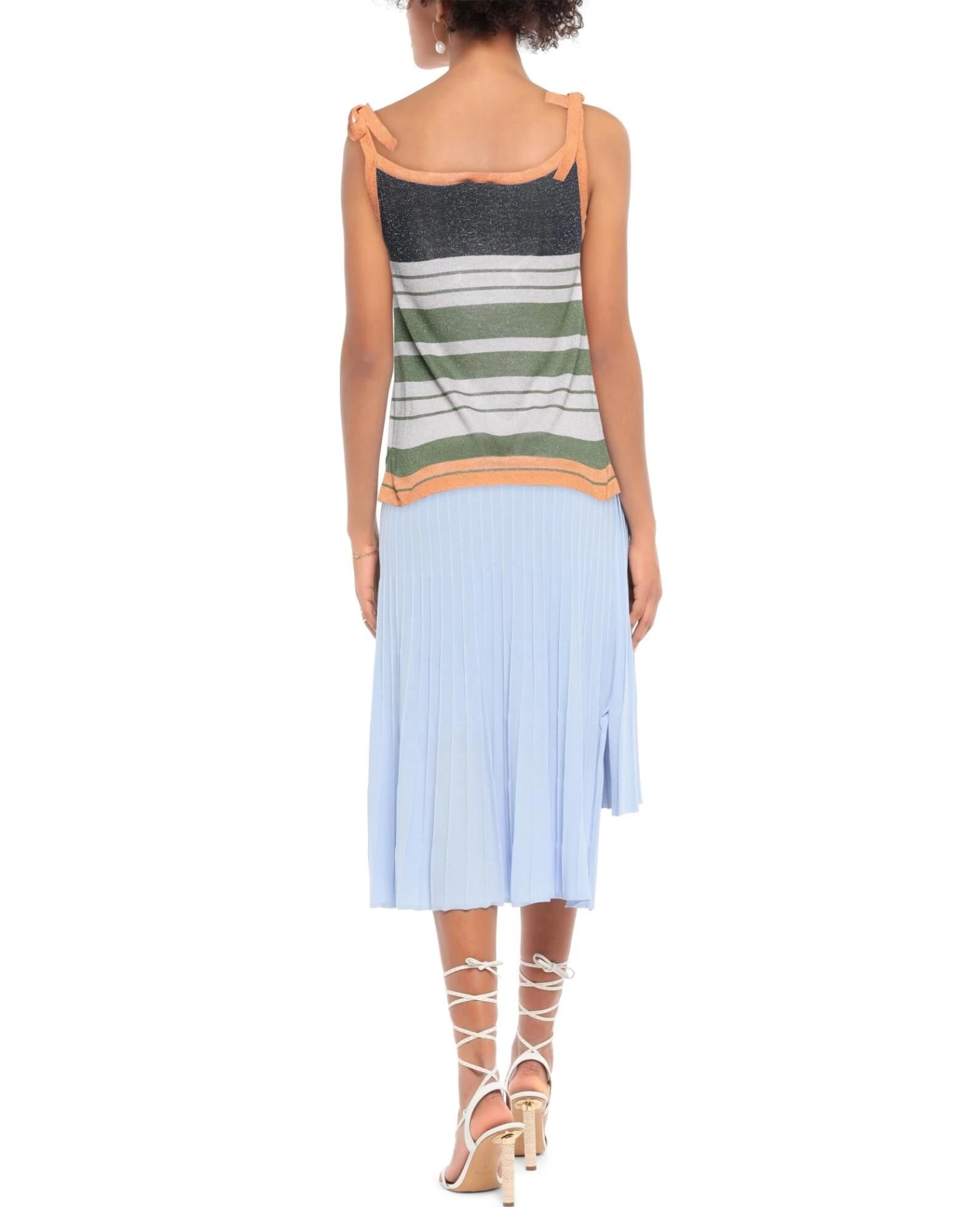 knitted, lamé, lightweight knit, no appliqués, stripes, wide neckline, sleeveless