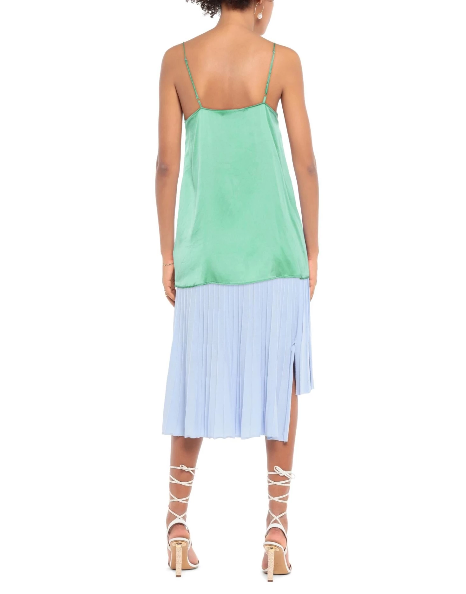 satin, no appliqués, solid color, deep neckline, sleeveless, no pockets, stretch